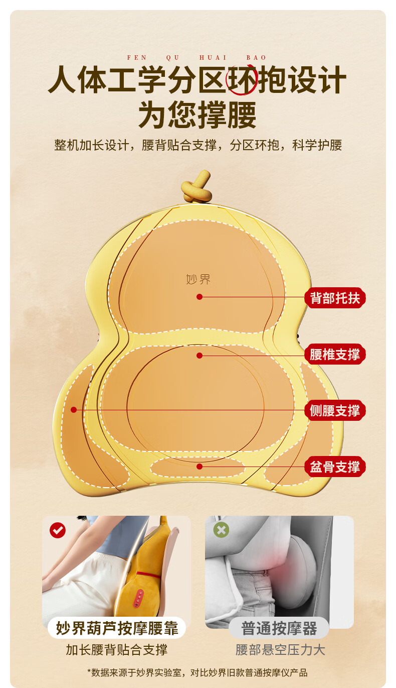Miaojie M13 Supreme Edition Waist Massager Shoulder, Neck, Leg and Back Massager All-in-one Multifunctional Massage Hot Compress Gourd Office Lumbar Pillow as Birthday and New Year Gifts for Elders Yellow