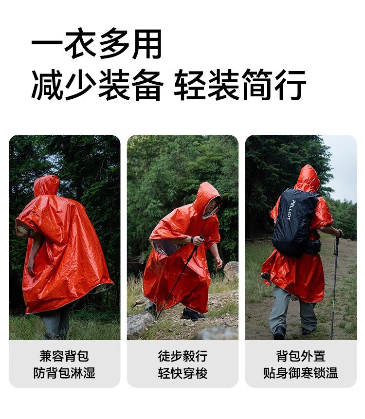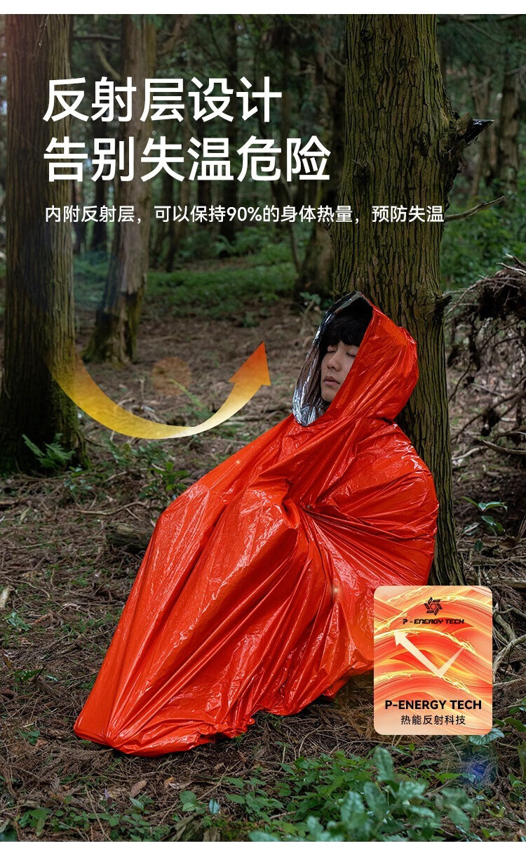 Minggu emergency raincoat, emergency blanket, thermal poncho, outdoor camping, cold and windproof life-saving equipment, orange CW908571