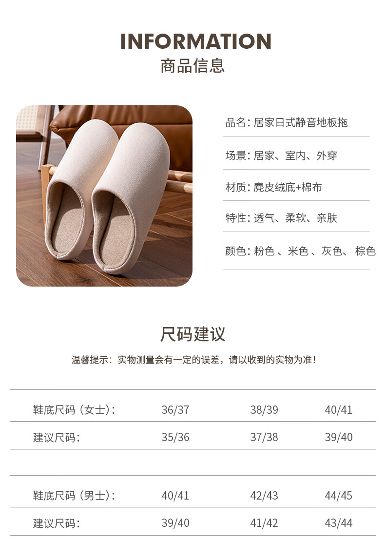 Yu Zhaolin (YUZHAOLIN) Japanese style silent cotton slippers for men and women spring and autumn home indoor wooden floor four seasons YC198 gray 44-45