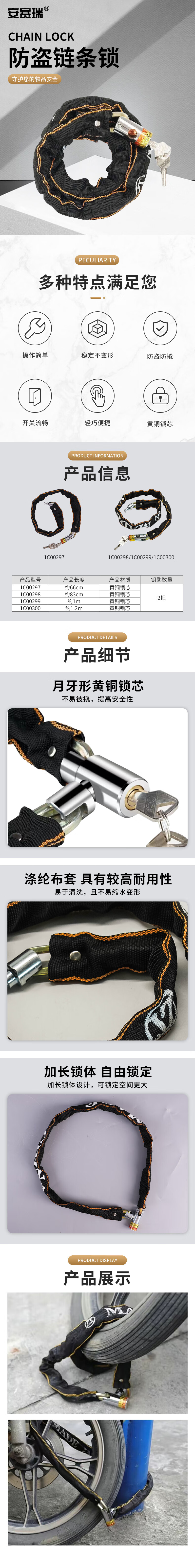 Ansery bicycle lock, cloth chain lock, portable electric vehicle, motorcycle anti-theft lock, shop door lock, about 1m 1C00299