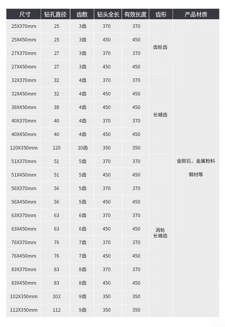 Work partner hole opener brick wall reinforced concrete wall thin wall water drill bit turbine Great Wall tooth 10 teeth 120X350mm