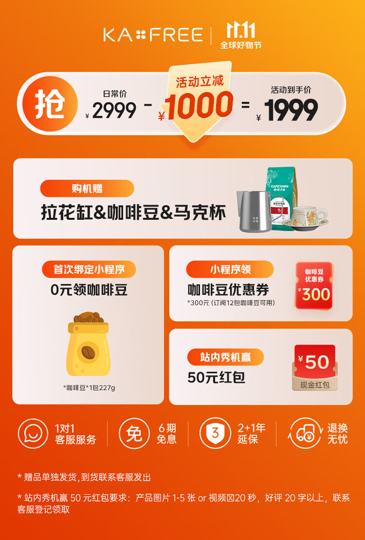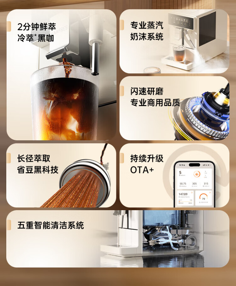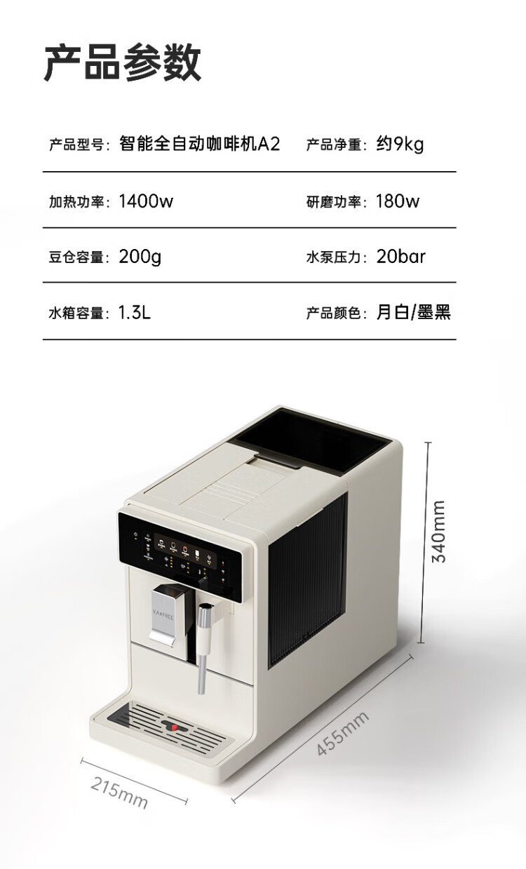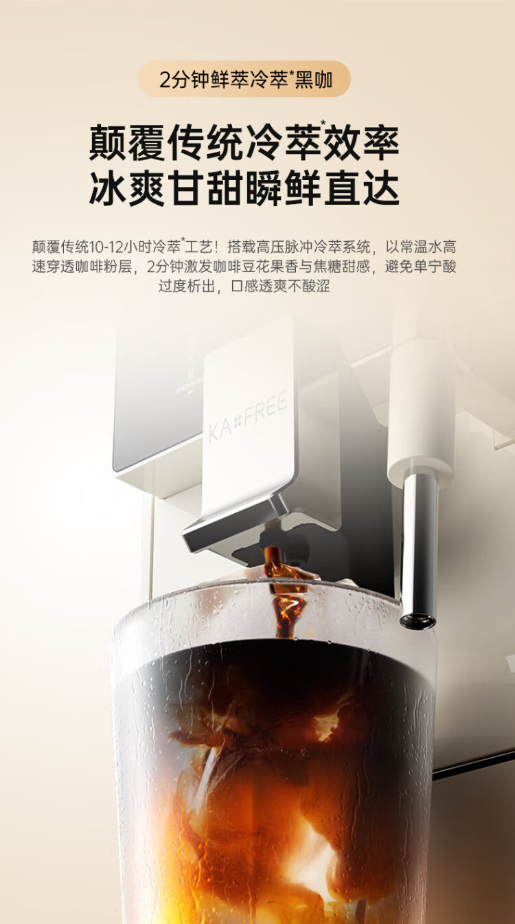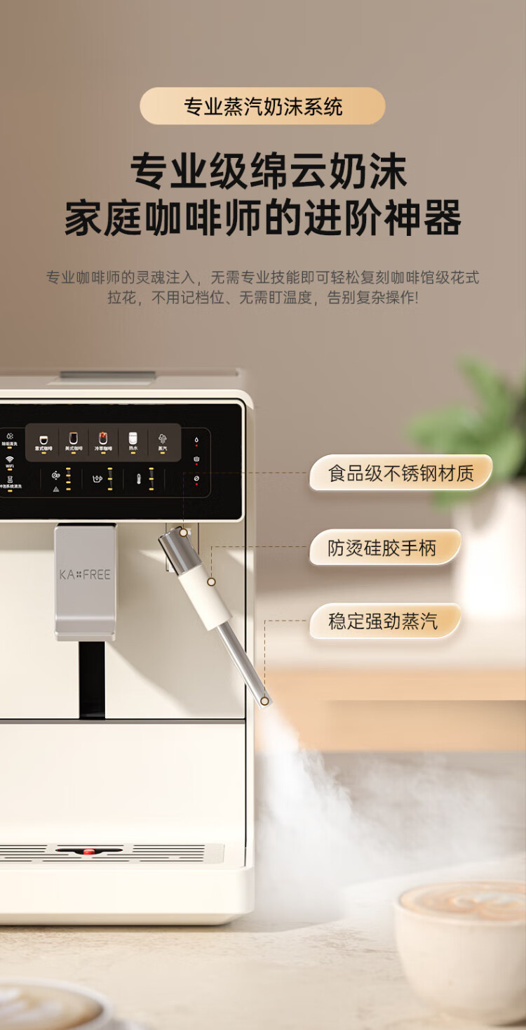 Coffee Freedom (KAxFREE) Government Subsidy Cold Brew Coffee Machine Fully Automatic Italian Household Fully Automatic Coffee Machine Grinding Integrated Steam Milk Frothing A2 Moon White Double Eleven