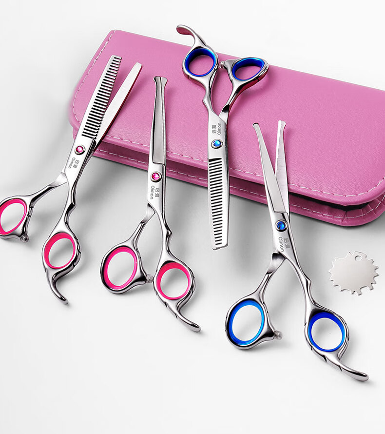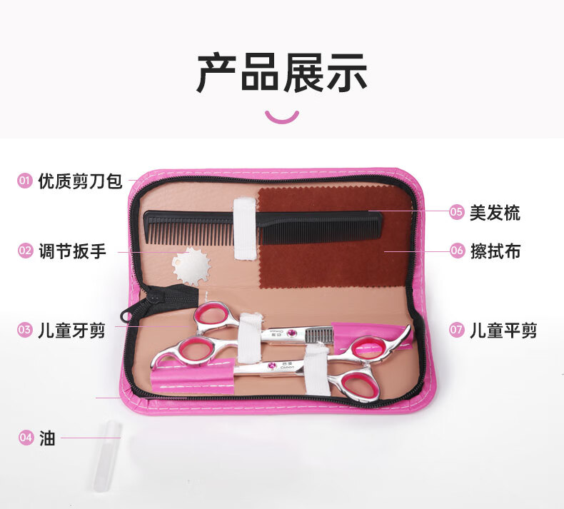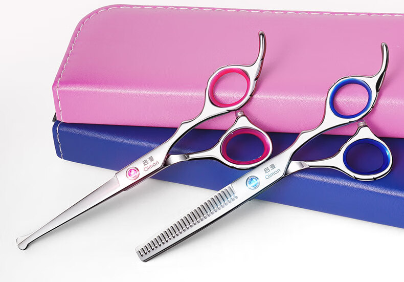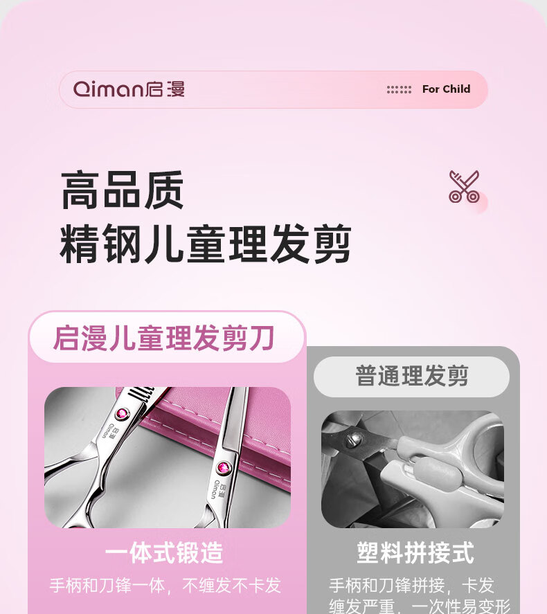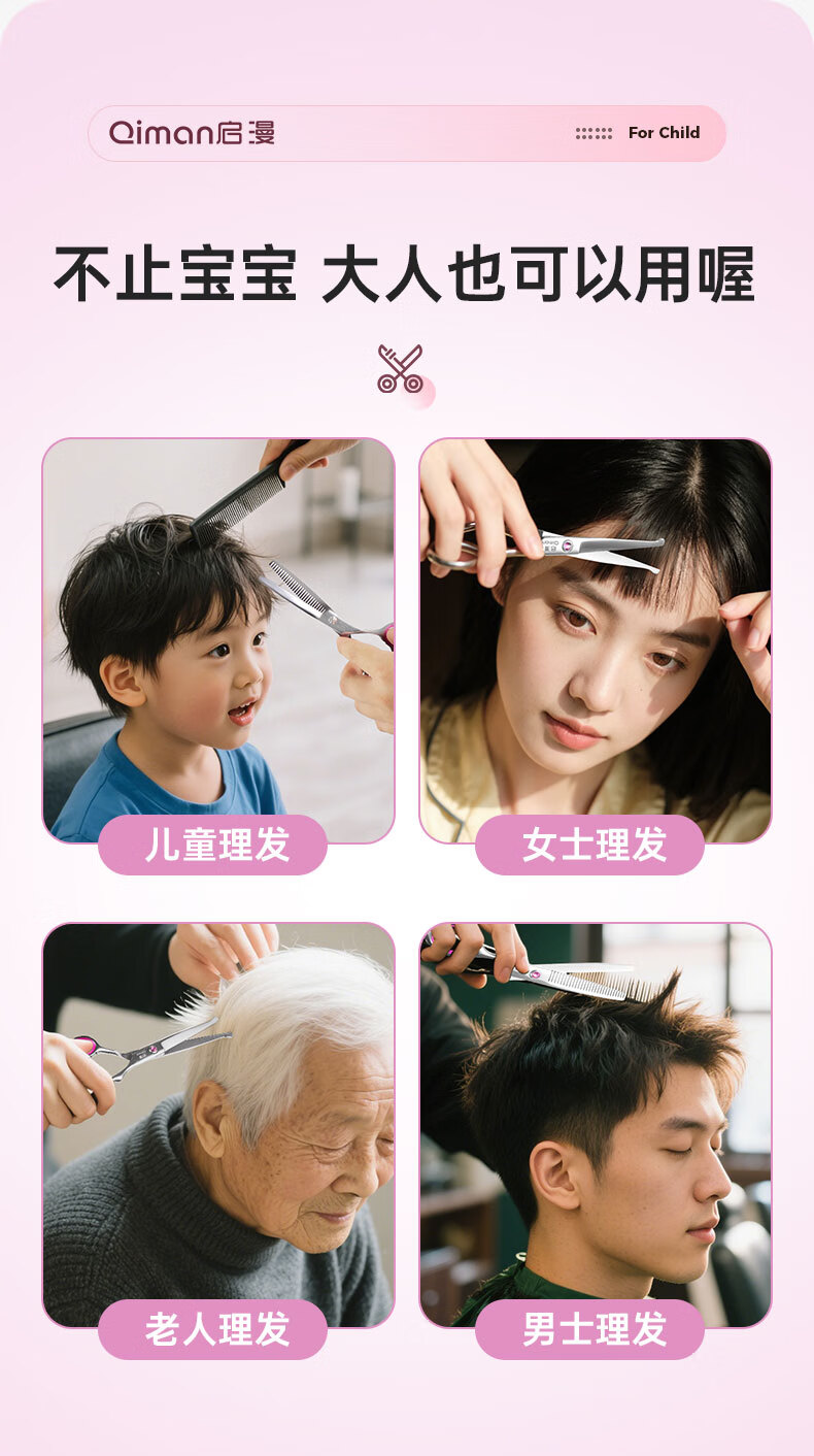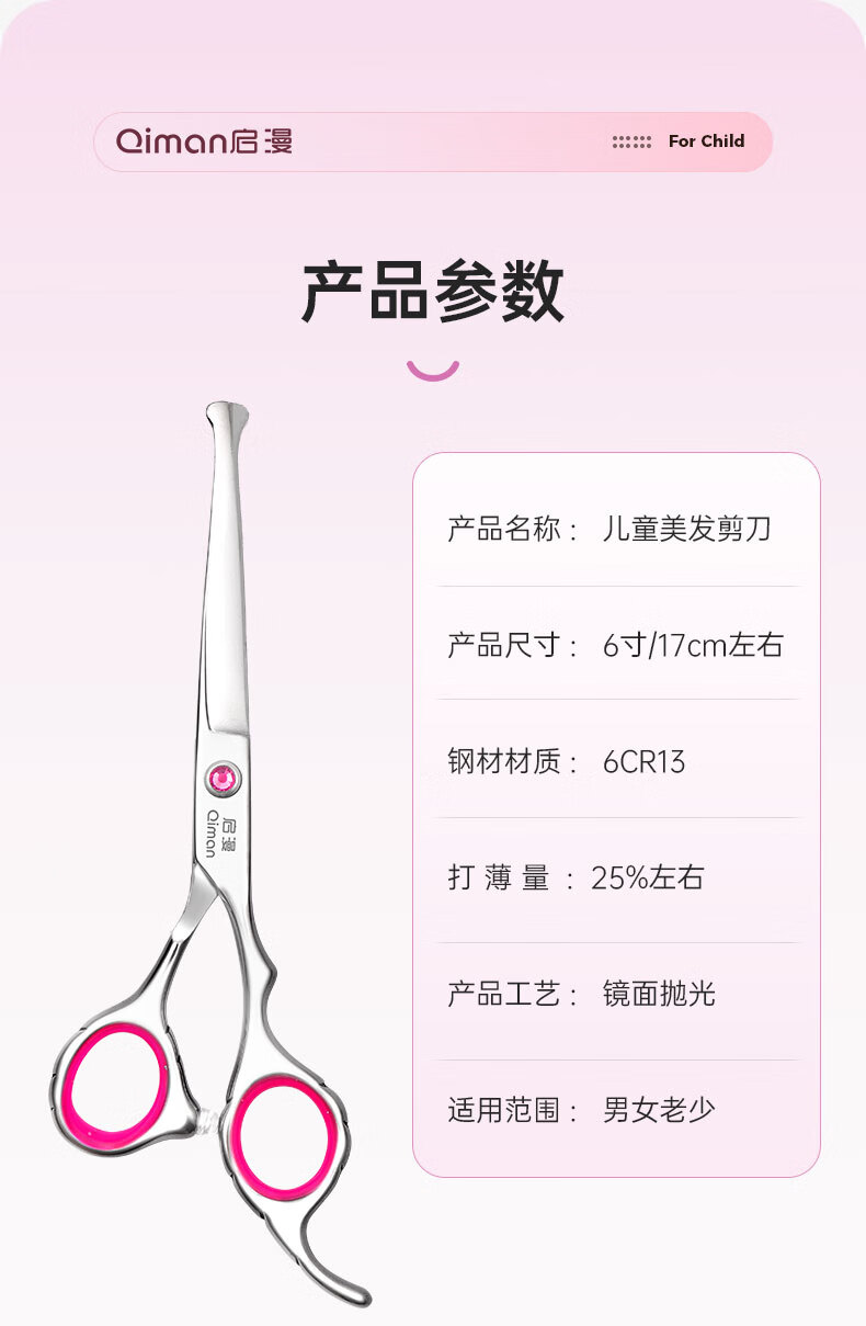 Qiman children's hair cutting scissors baby hairdressing device baby hair cutting scissors shaving hair cutting artifact cutting bangs thinning scissors set round head anti-poke QM10 blue
