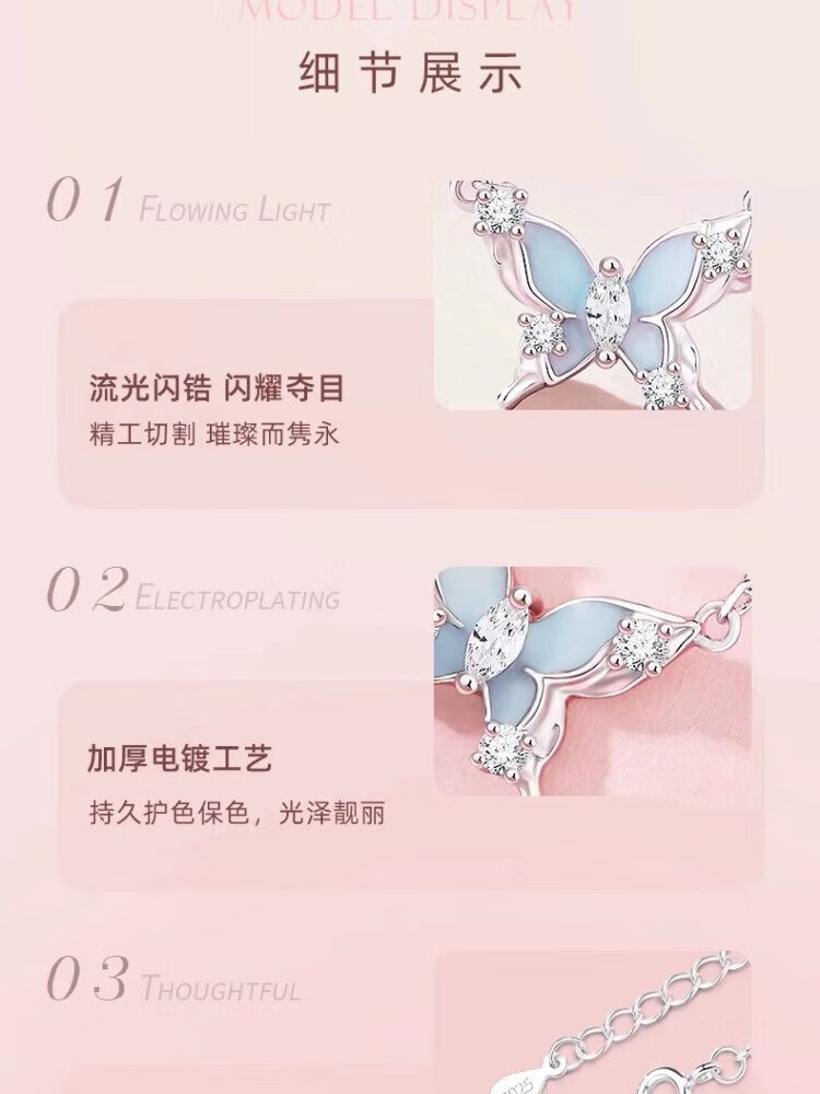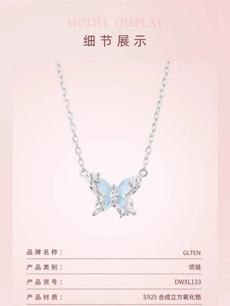 GLTEN Luminous Butterfly 925 Silver Necklace for Women 2025 New Pendant Birthday Gift Light Luxury Niche for Girlfriend and Wife