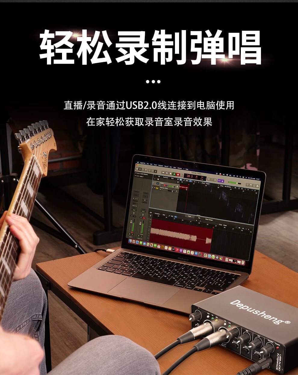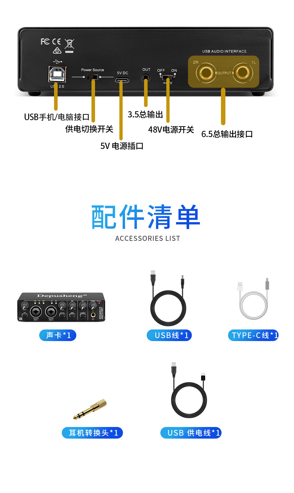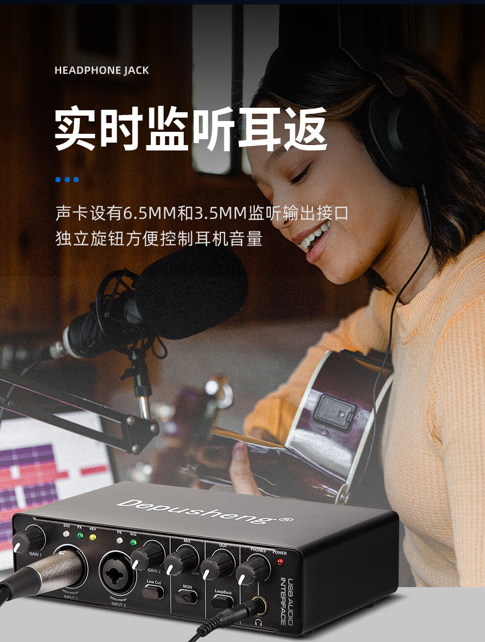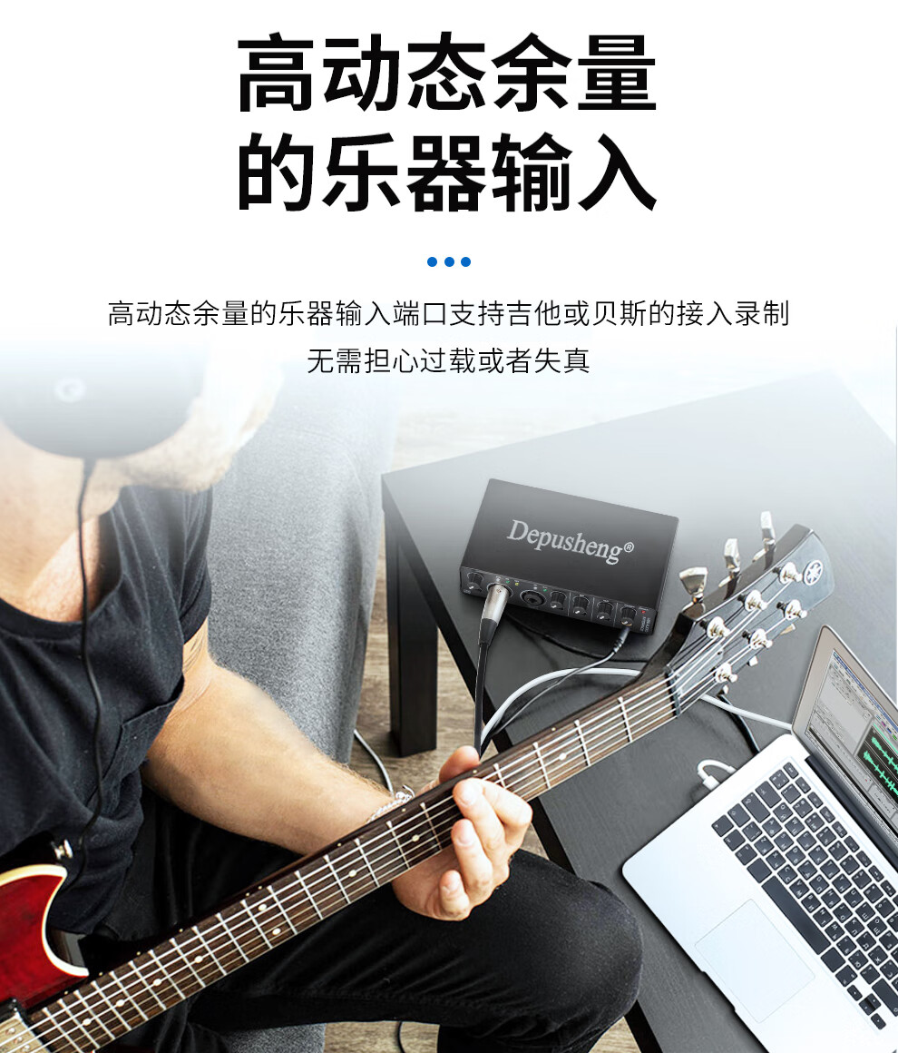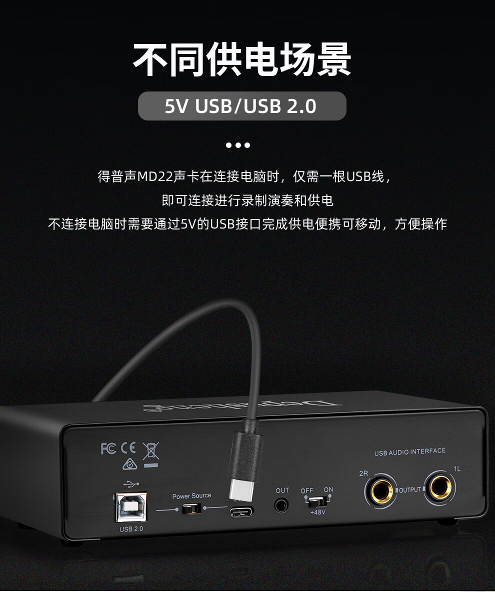 Depusheng mobile computer live broadcast sound card USB high-definition recording professional post-dubbing radio music arranger delivery audiobook anchor guitar instrument 48V power supply outdoor MD22