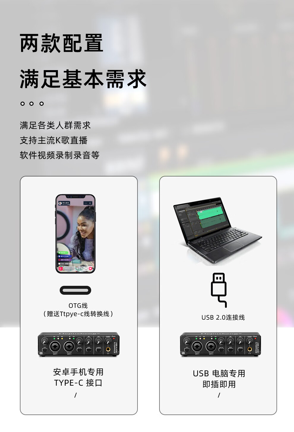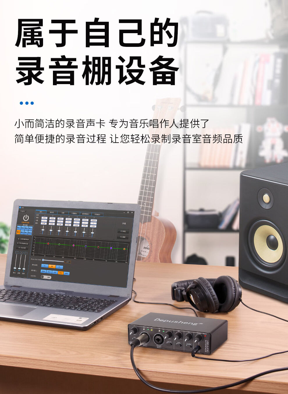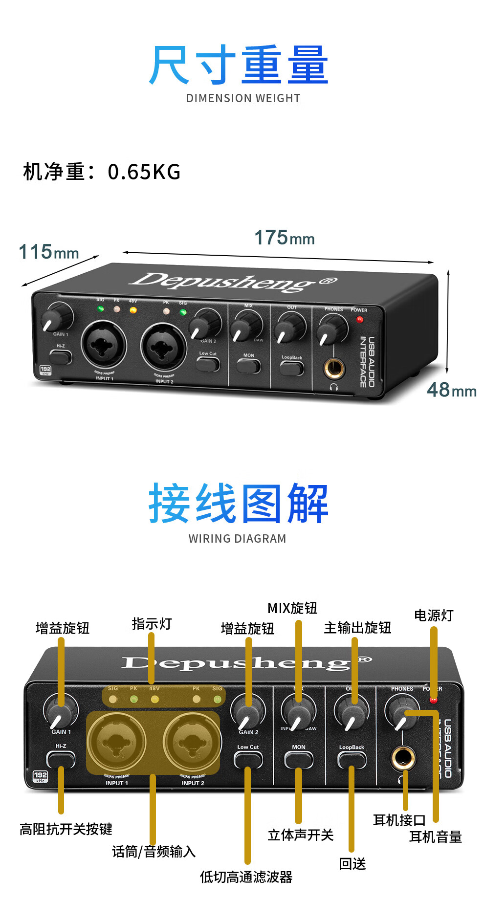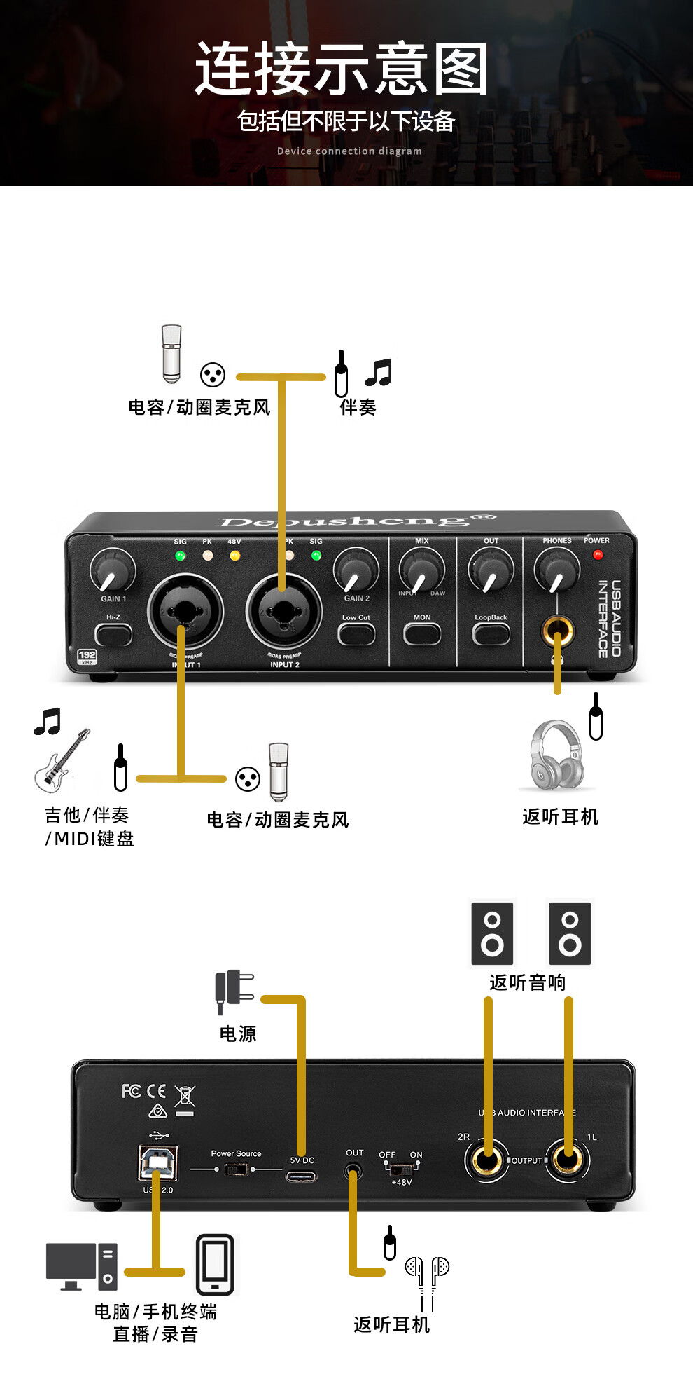 Depusheng mobile computer live broadcast sound card USB high-definition recording professional post-dubbing radio music arranger delivery audiobook anchor guitar instrument 48V power supply outdoor MD22