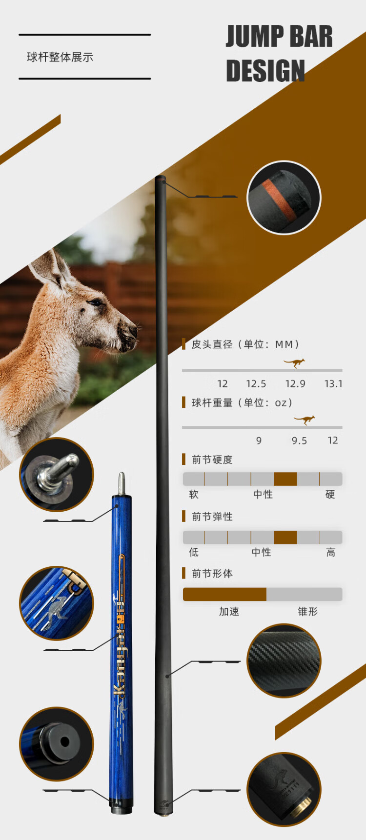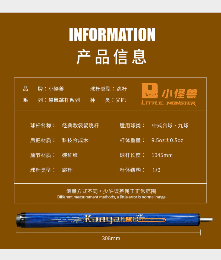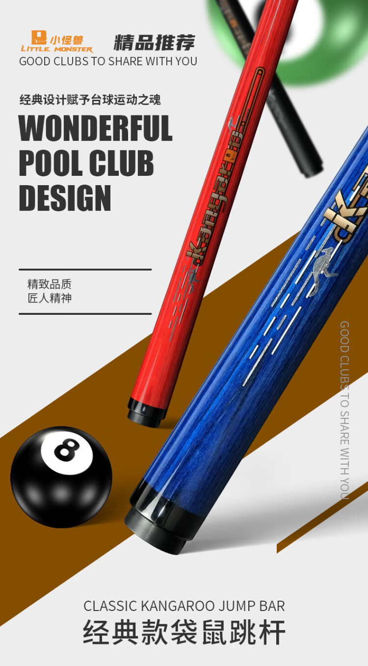 LTOMSTRE Little Monster Billiard Cue American Nine-Ball Chinese Black Eight Jumping Cue Kangaroo Jumping Stick-Dark Night Black