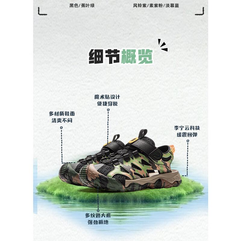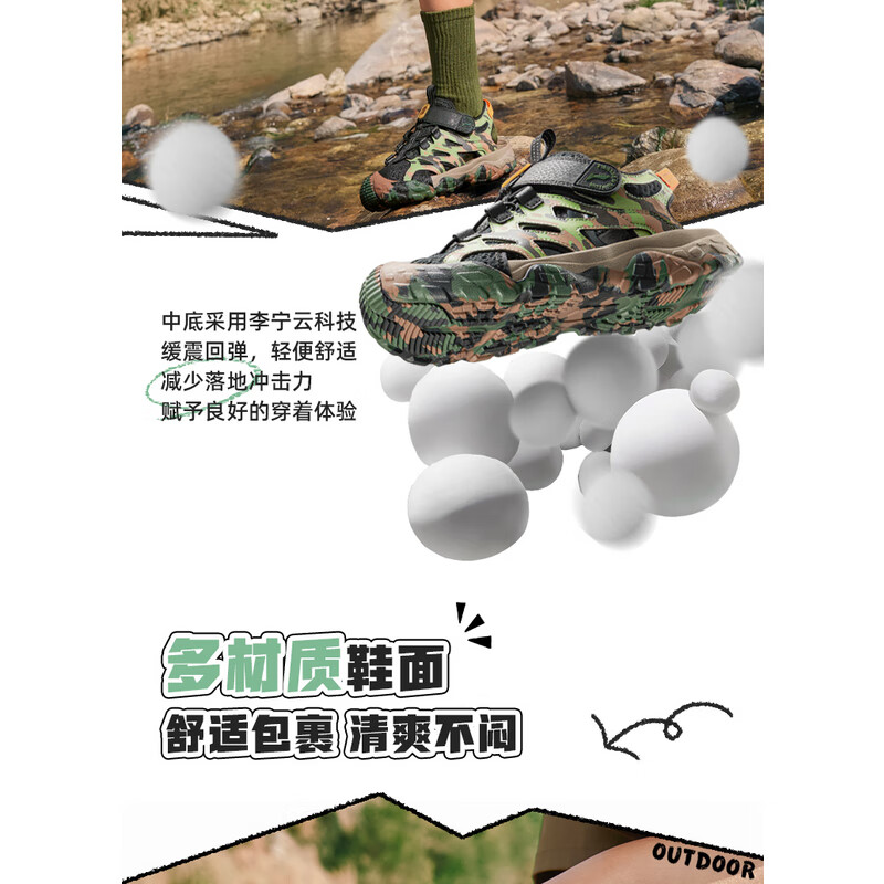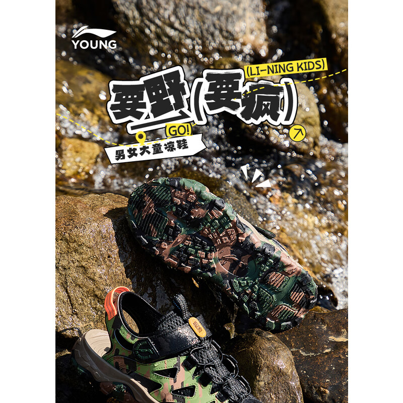 Li Ning children's shoes, children's sandals, men's and women's reflective shock-absorbing rebound outdoor sports shoes 33YKEV016-8