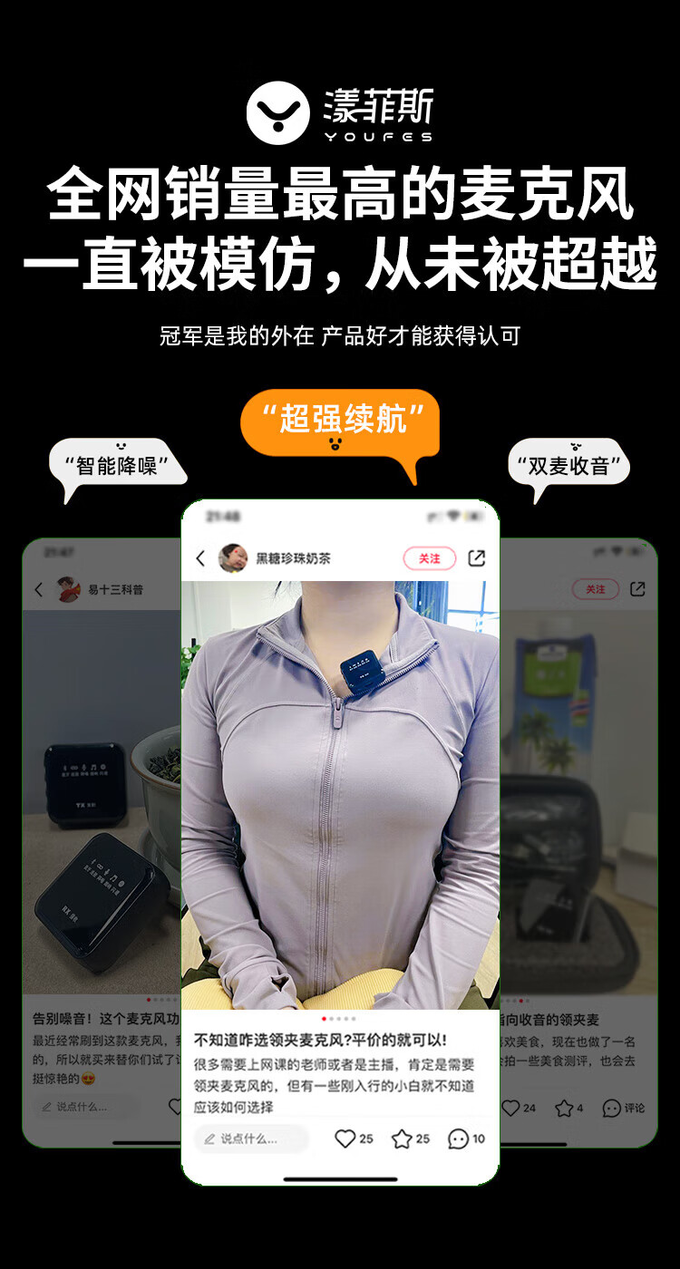 Yangfeisi Radio 0 Negative Review Wireless Lavalier Microphone Anchor Live Recording Equipment Outdoor Douyin K Song Radio Microphone Professional Noise Reduction Microphone Mobile Phone Computer Camera One Drag One