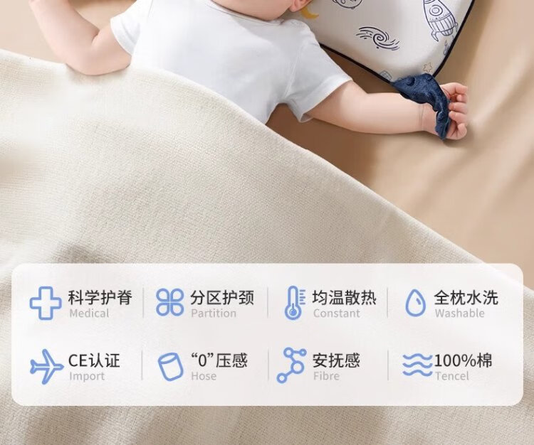 Xin'andai baby pillow is breathable for babies over 6 months old and special for 1-6 years old children. It is washable and suitable for all seasons.