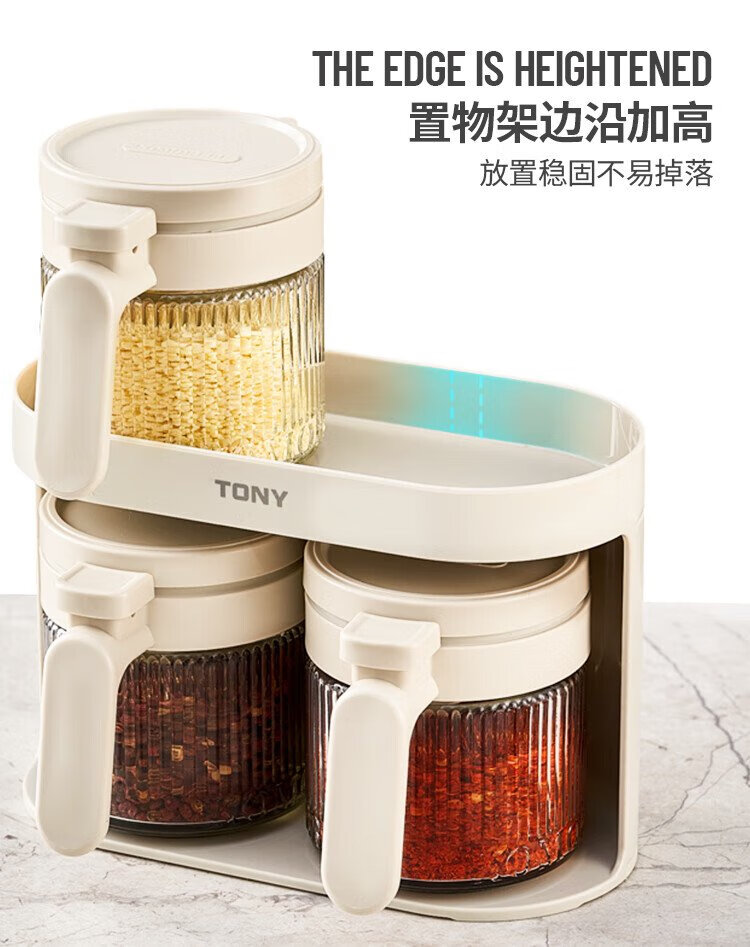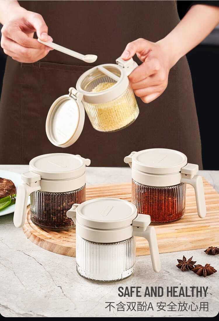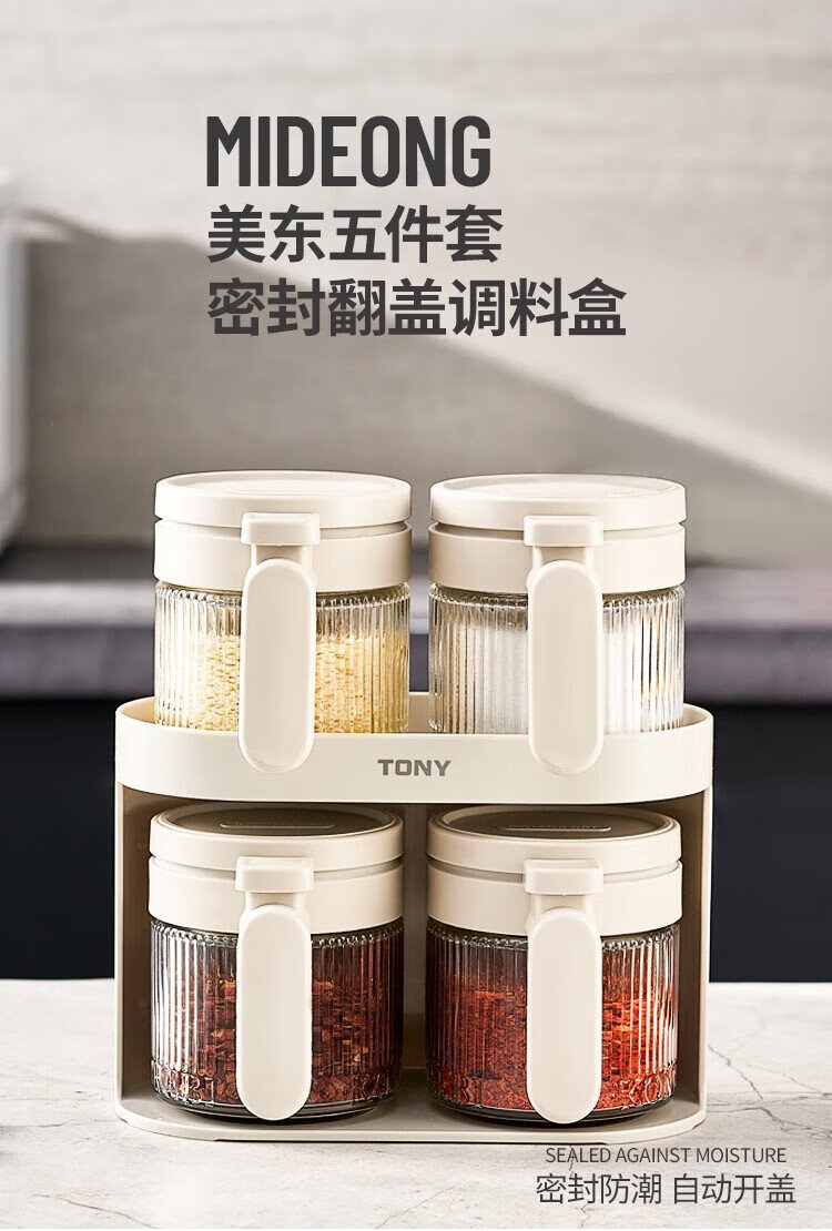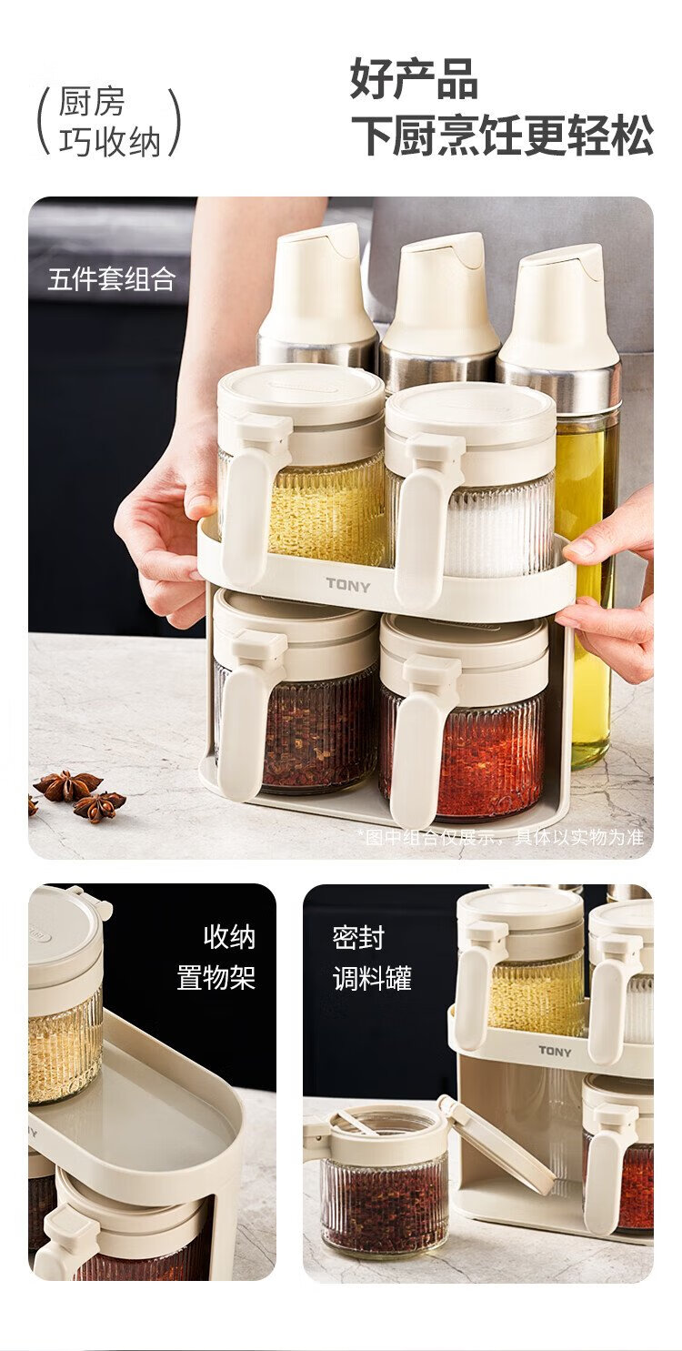 Bdo kitchen seasoning jar five-piece set sealed jar spice jar salt sugar seasoning bottle seasoning box four jars plus a storage rack