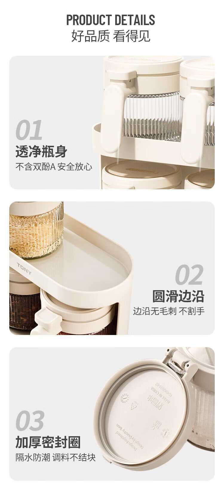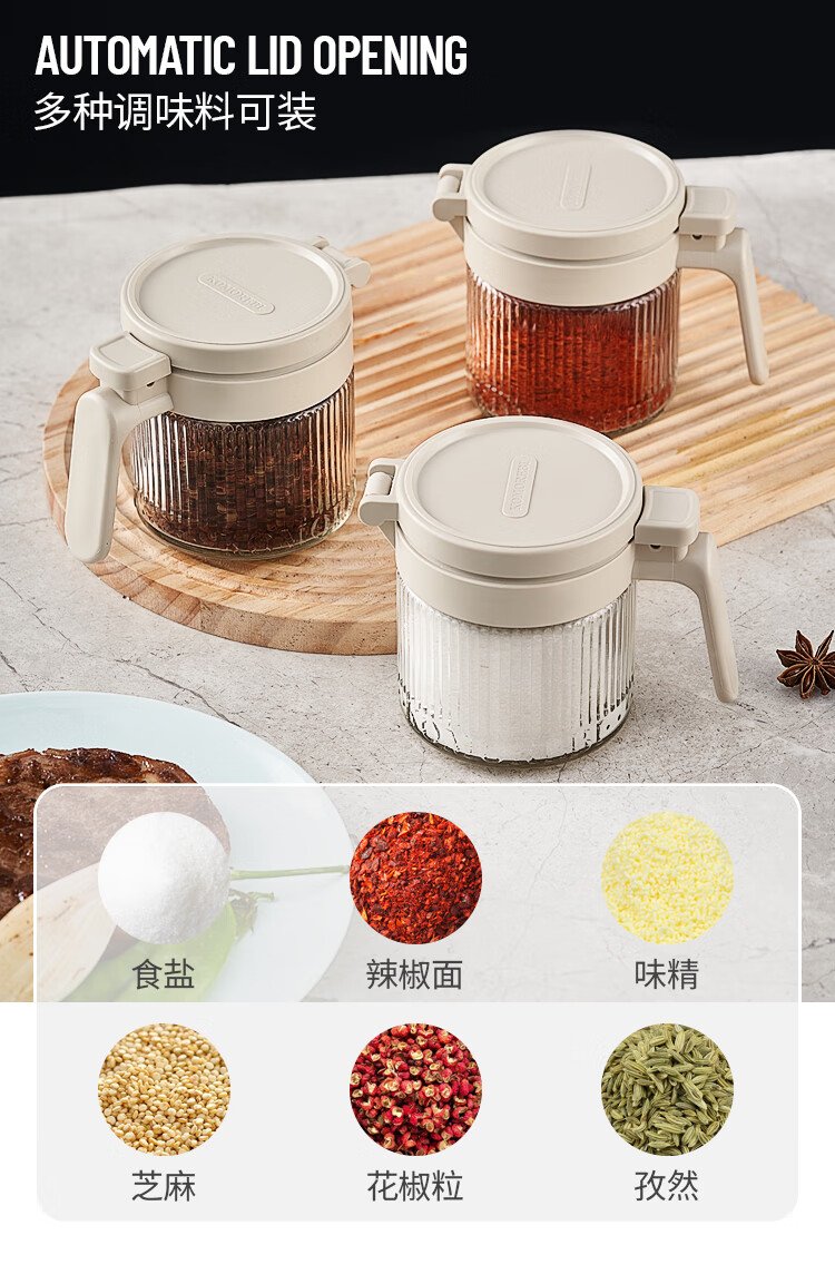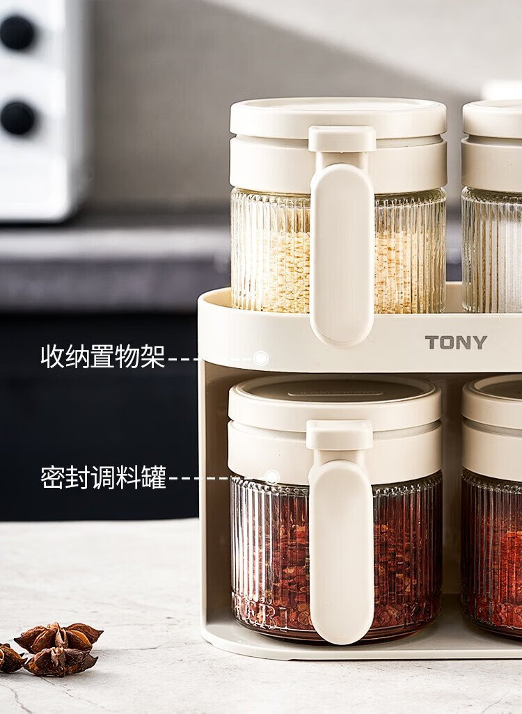 Bdo kitchen seasoning jar five-piece set sealed jar spice jar salt sugar seasoning bottle seasoning box four jars plus a storage rack