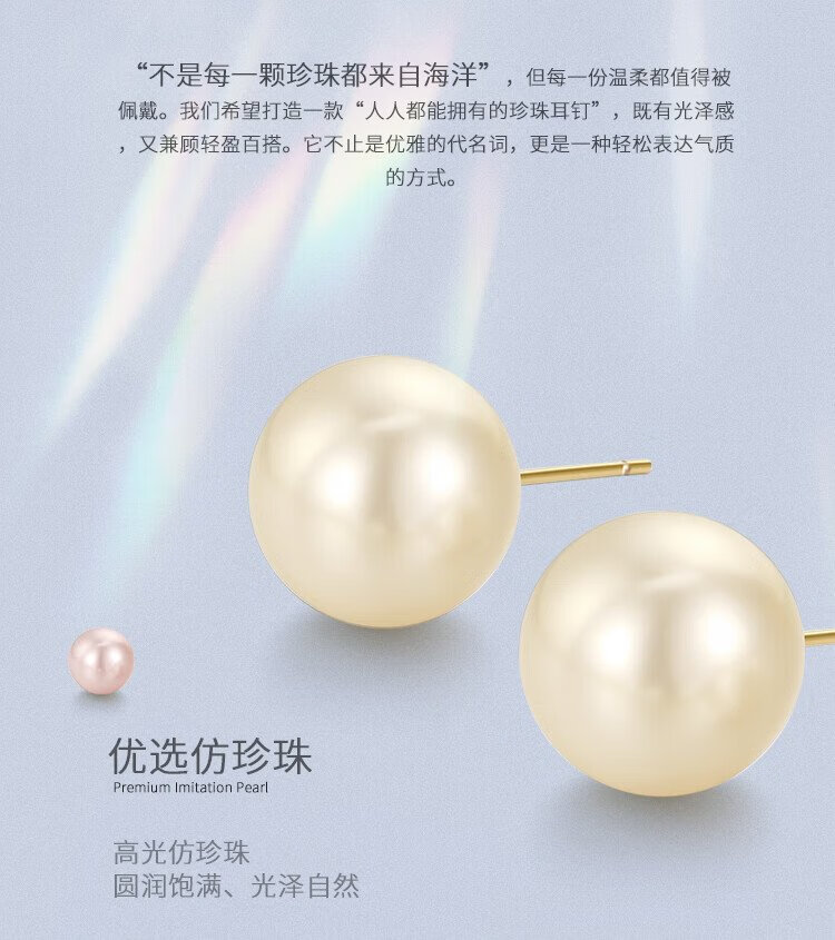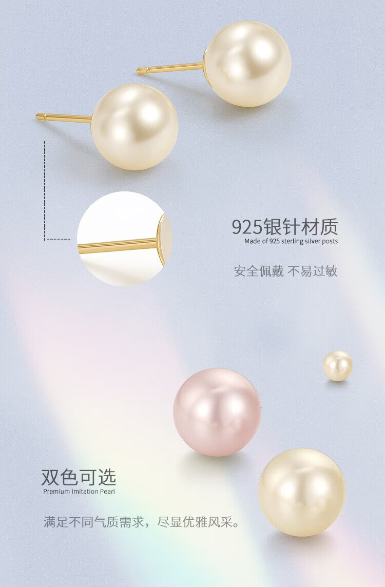AJIDOU Ajidou's popular imitation pearl earrings 925 silver needles exquisite and versatile round large pearls birthday off-white 12mm