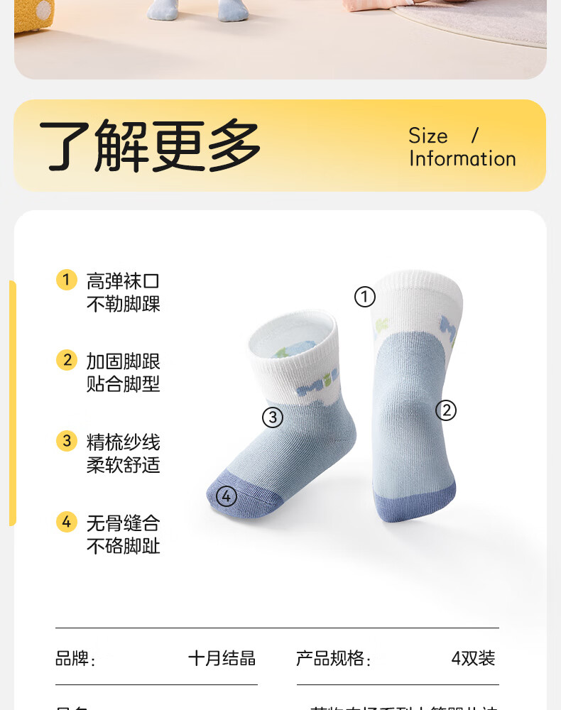 October Crystal Baby Socks Autumn and Winter Male and Female Baby Cotton Socks Newborn Children's Four Seasons Mid-Tube Socks 5A Antibacterial Class A