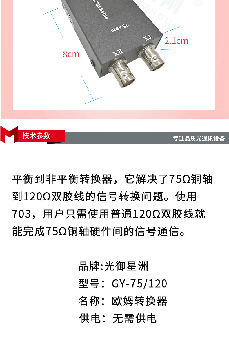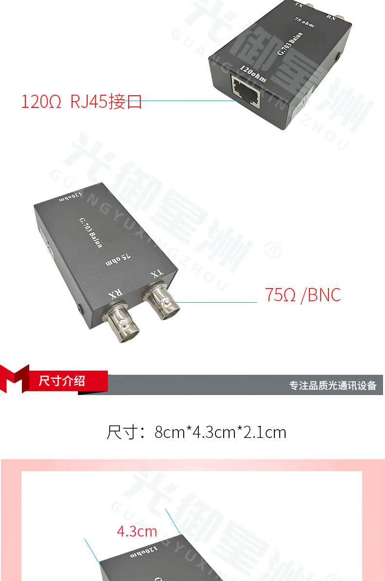 Guangyu Xingzhou GY-75/120 E1 ohm converter balanced to unbalanced 120 ohm to 75 ohm G703 coaxial to RJ45