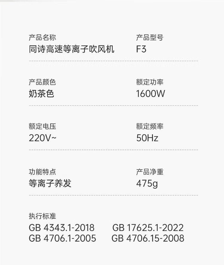 Tongshi Aiqi F3 high-speed hair dryer 3 billion plasma hair care hair dryer eliminates static electricity without damaging hair and blows hair dryer wife's birthday gift