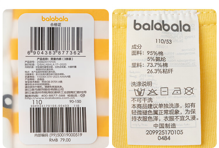 Balabala boys underwear cotton type A children's boxer shorts baby skin-friendly four-corner three-pack 209925170105
