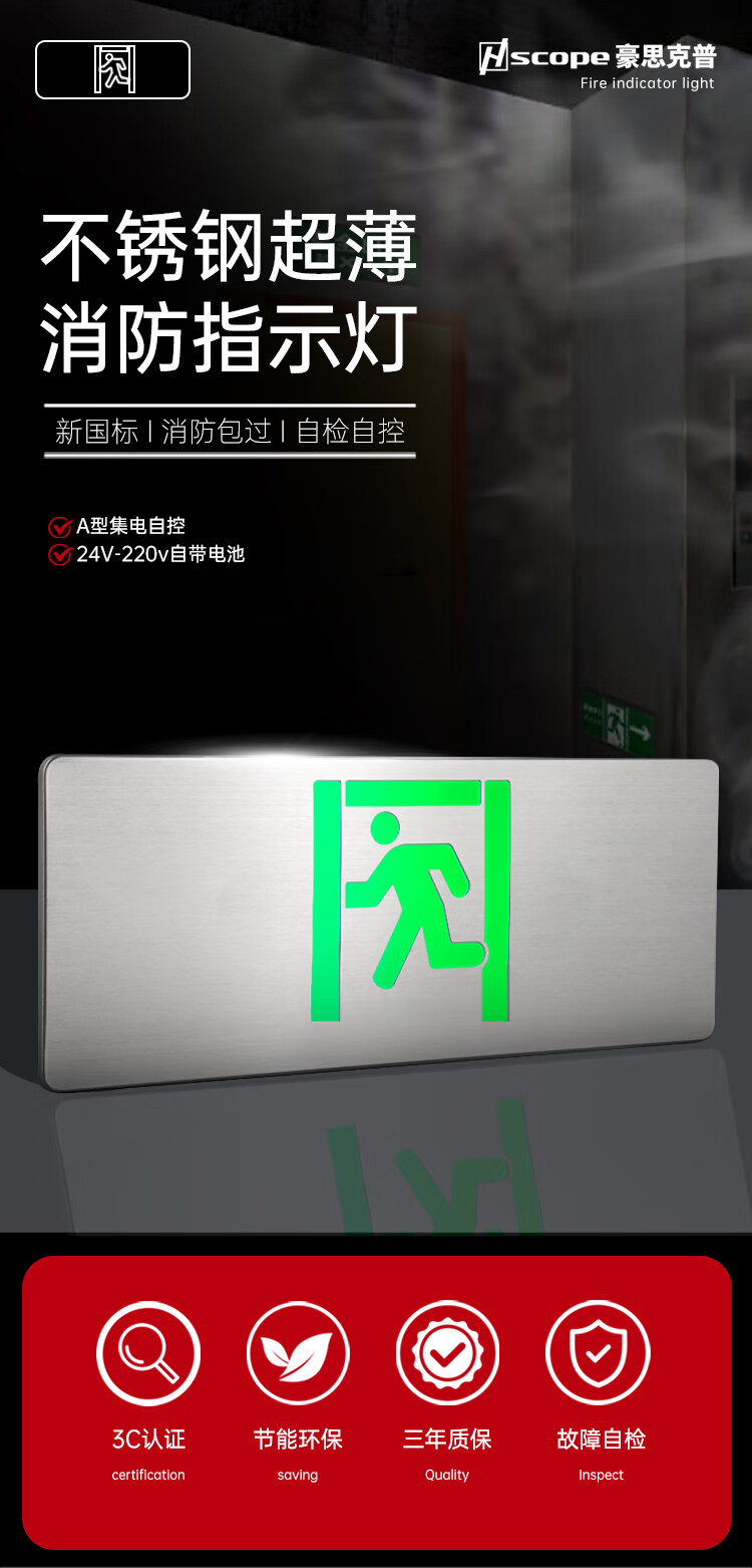 Hauskop safety exit indicator light sign LED emergency evacuation sign floor fire emergency 3C fire certification stainless steel single-sided left