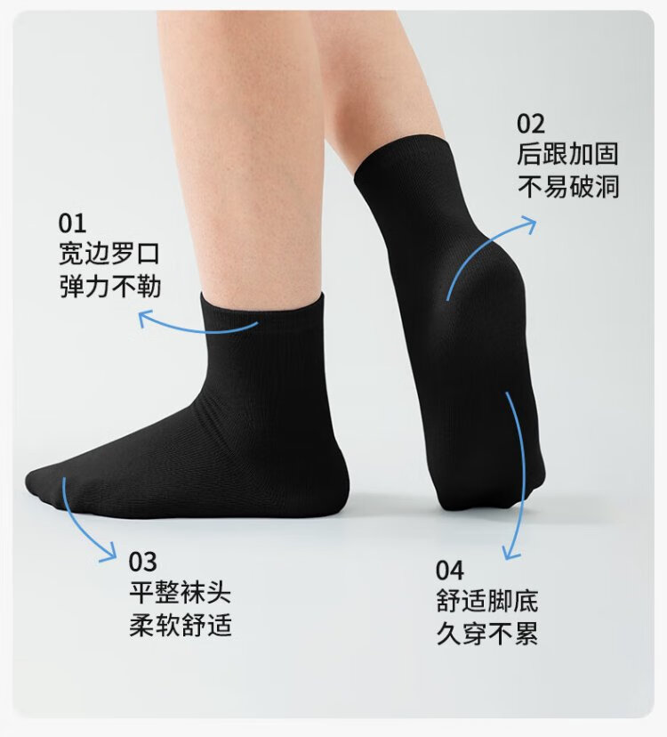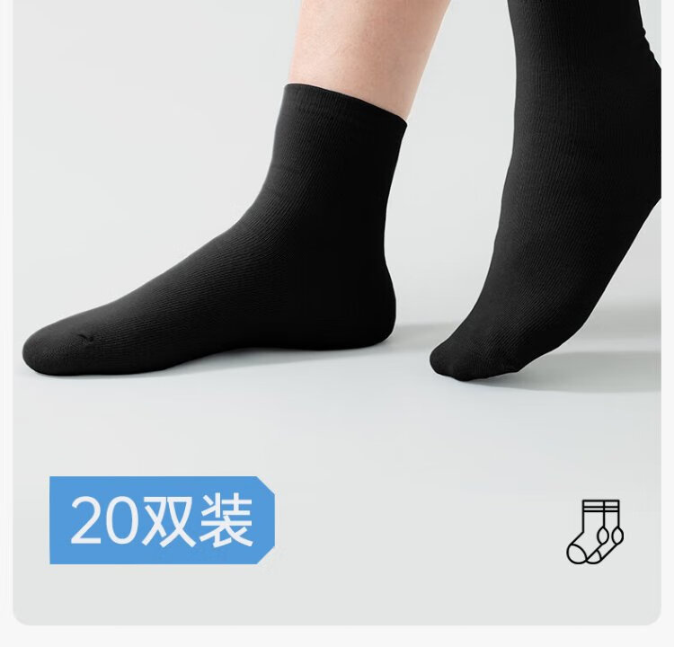 Beianshi Disposable Socks for Men Antibacterial Grade Travel Portable Medium Tube Black 20 Pairs