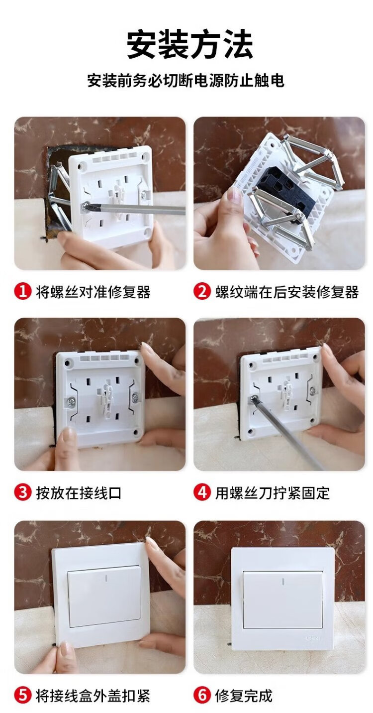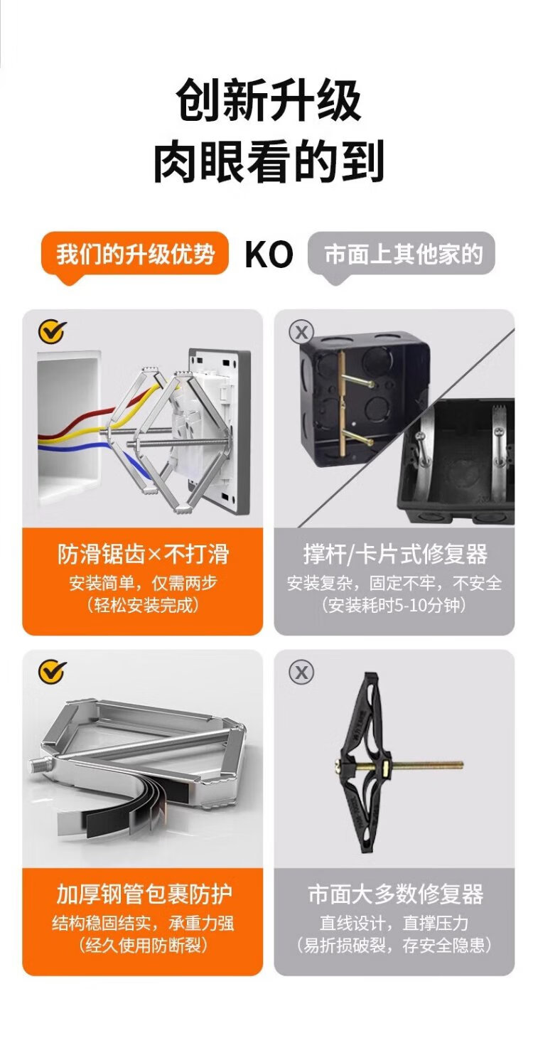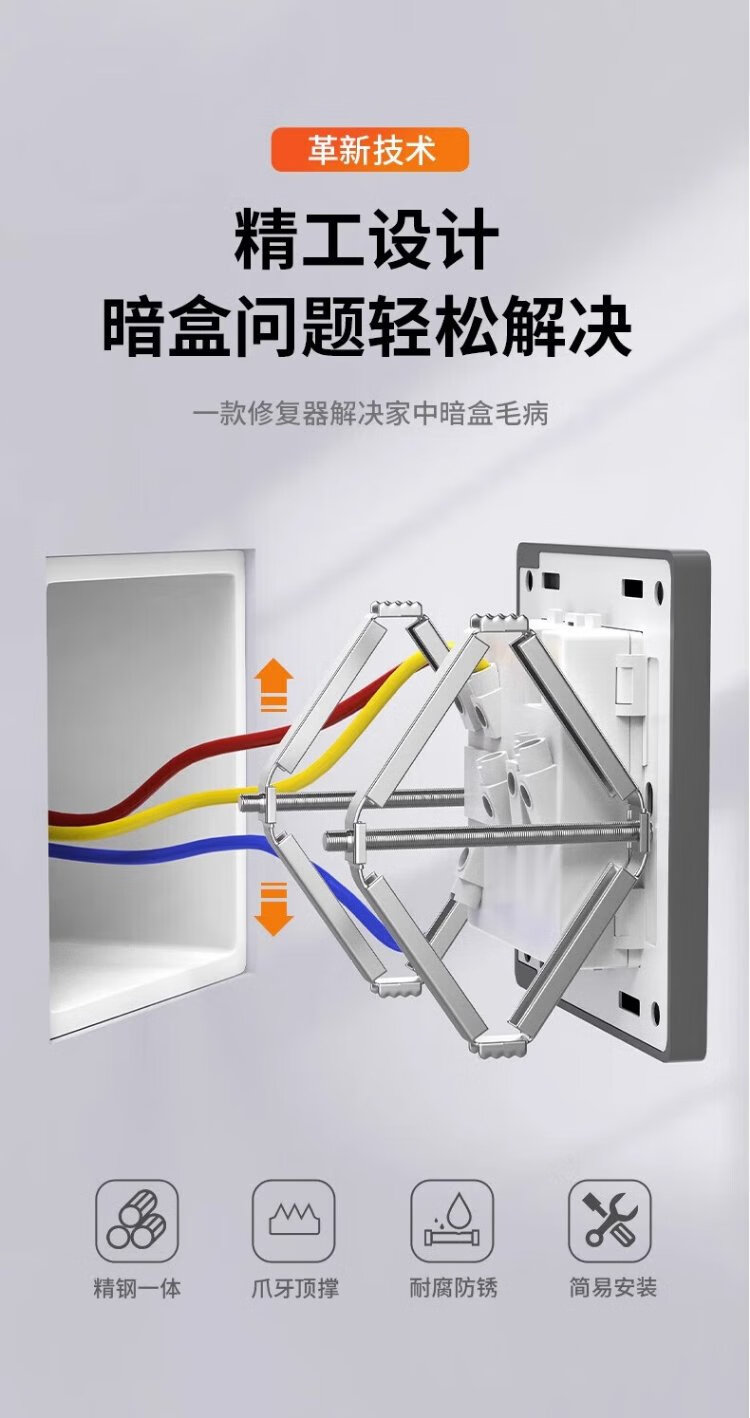 安达通 暗盒修复器 86型插座开关固定器线盒修复修补神器 升级款锯齿款10只装