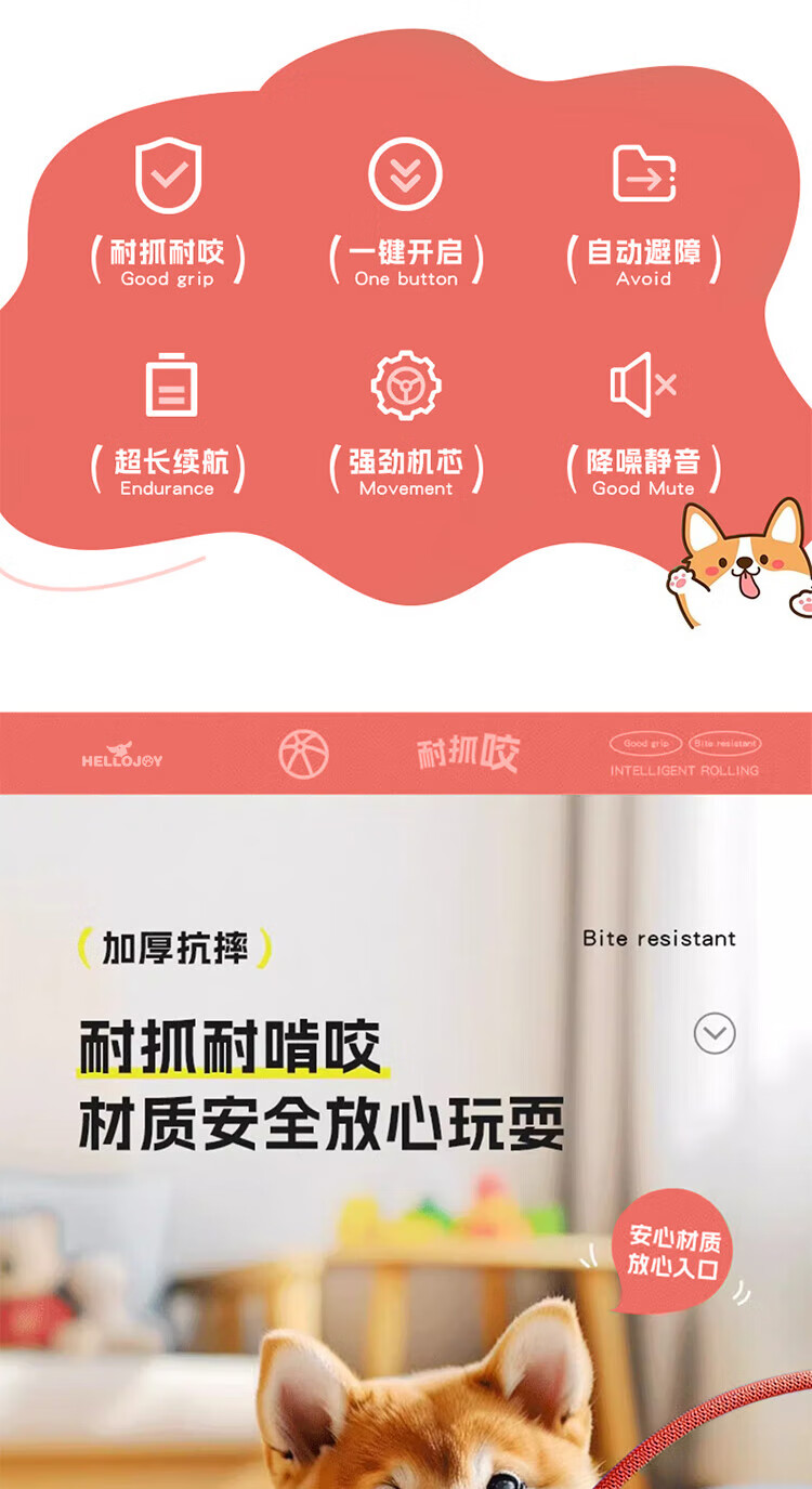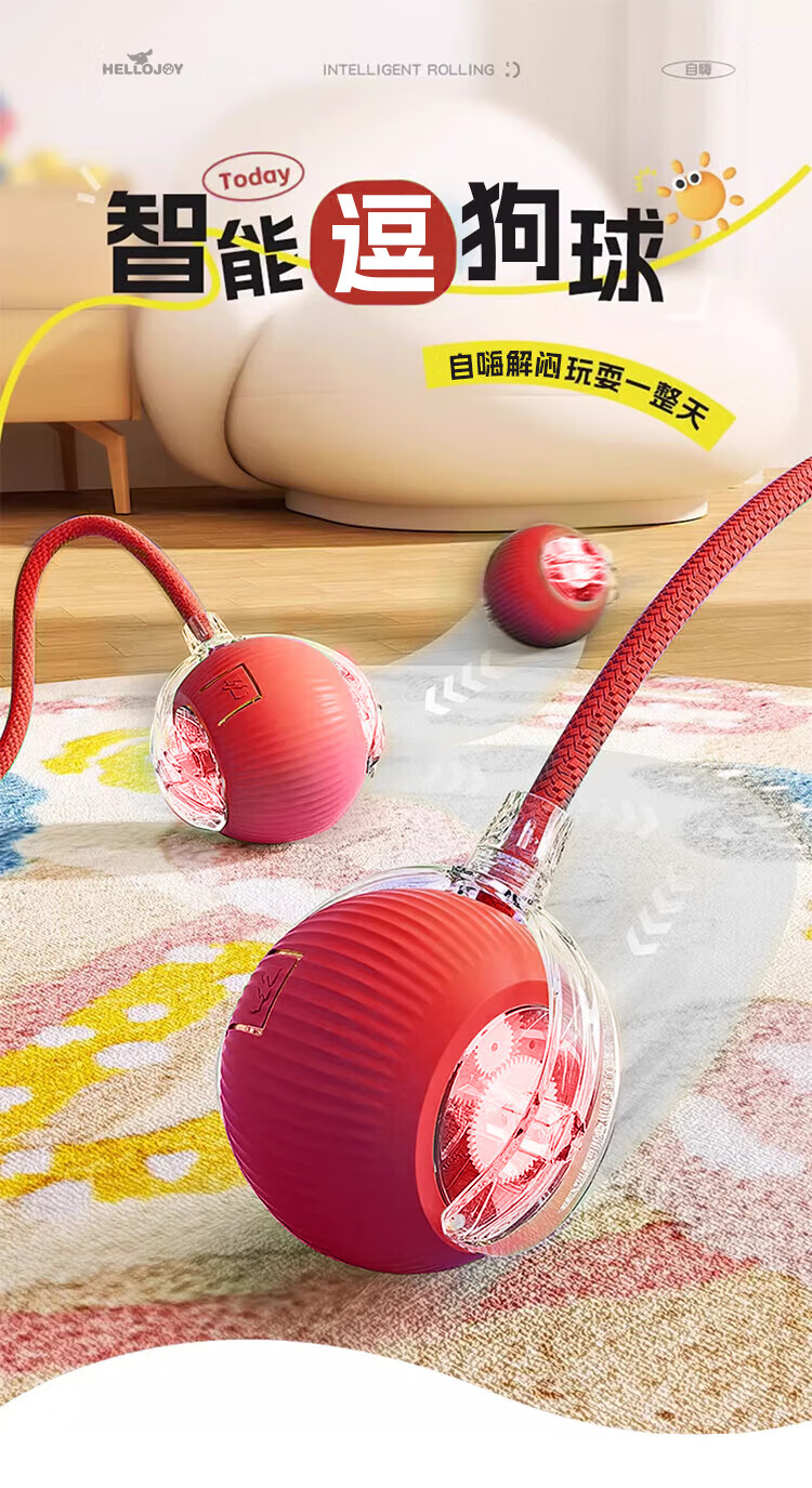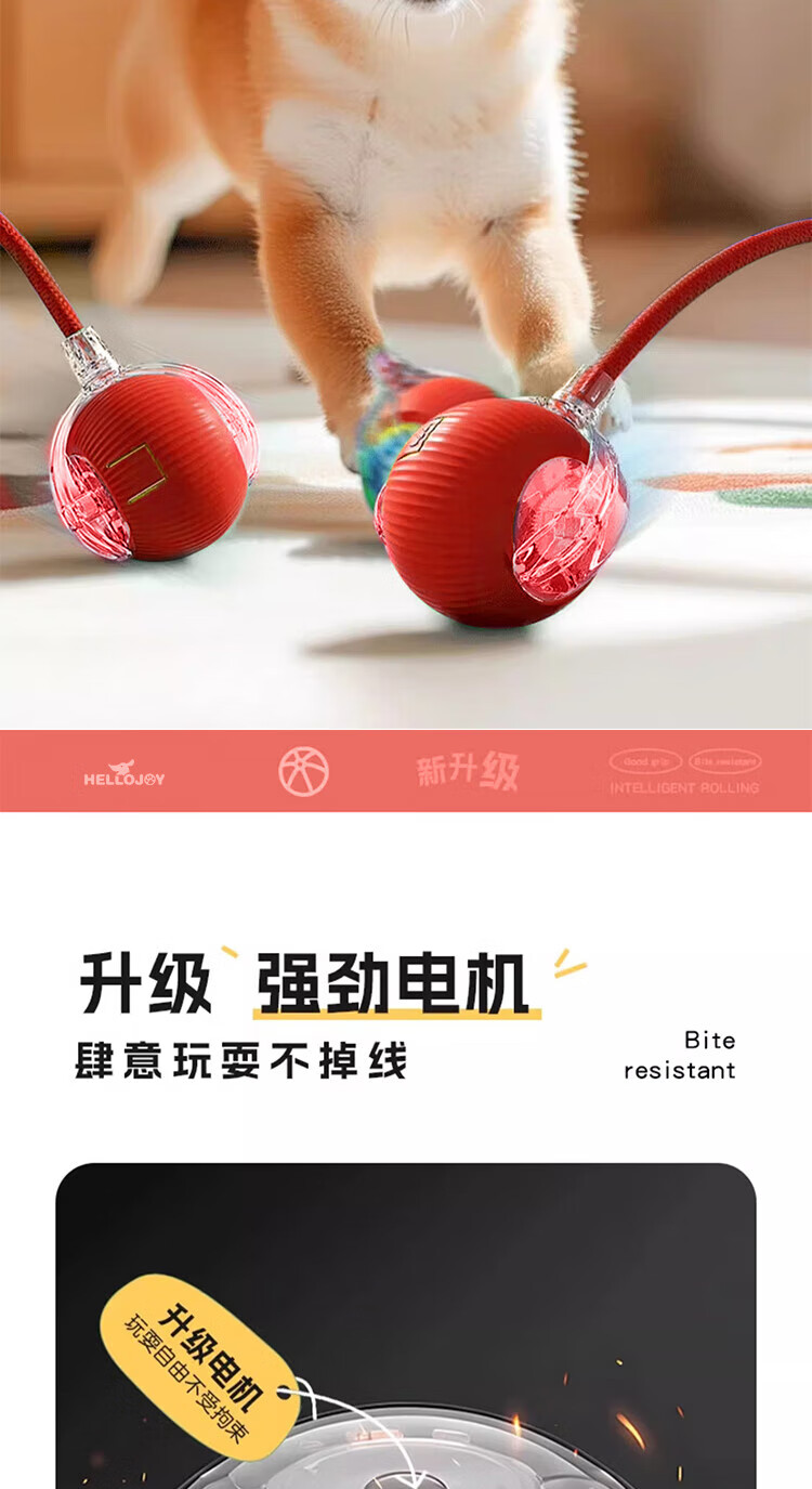 HELLOJOY dog toy bite-resistant ball, automatic dog amusing artifact, self-pleasure and boredom relief pet electric puppy smart elastic dog walking ball