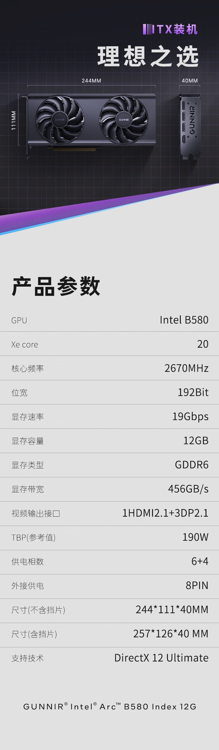 Blue Ji Intel Arc B580 index 12G 2670MHz GDDR6 game graphics card design video editing desktop computer graphics card
