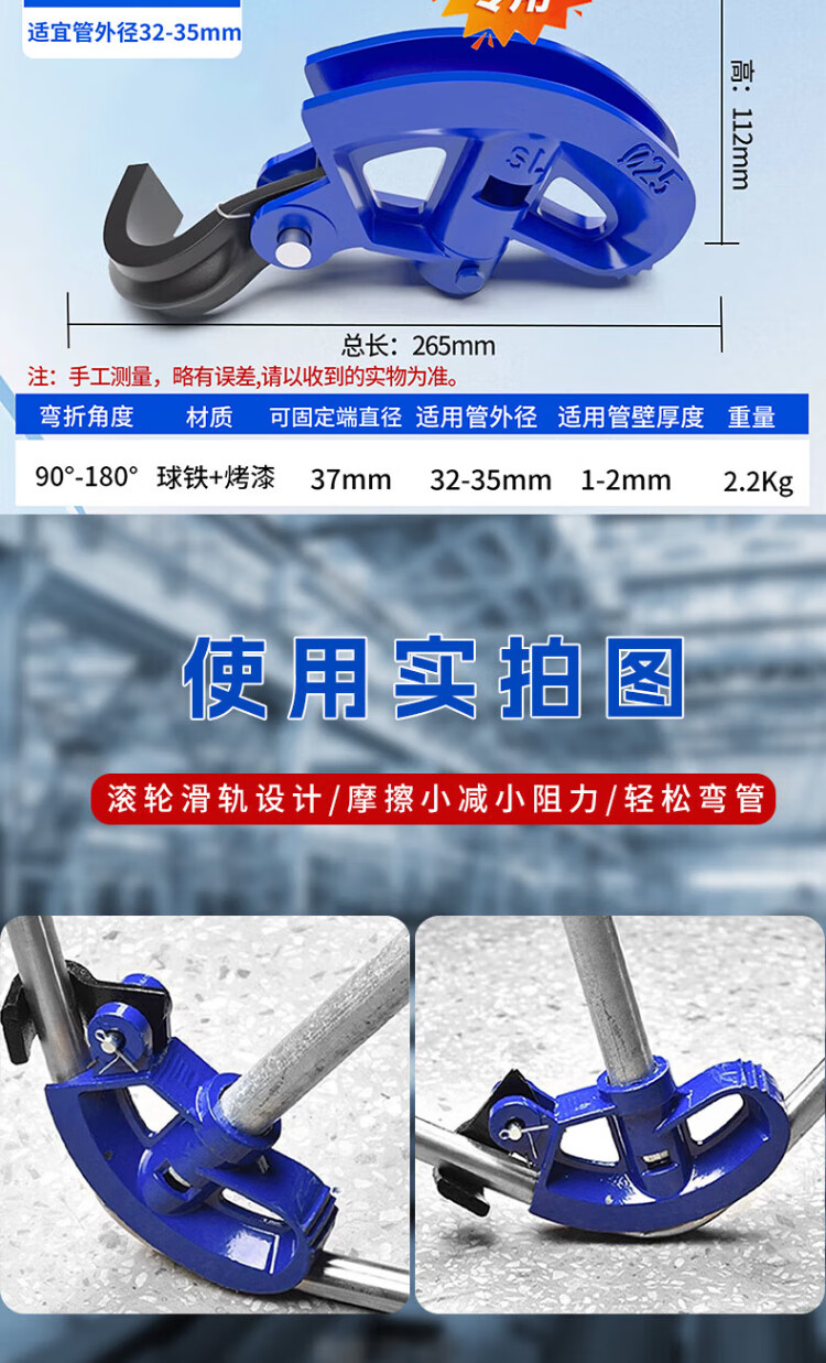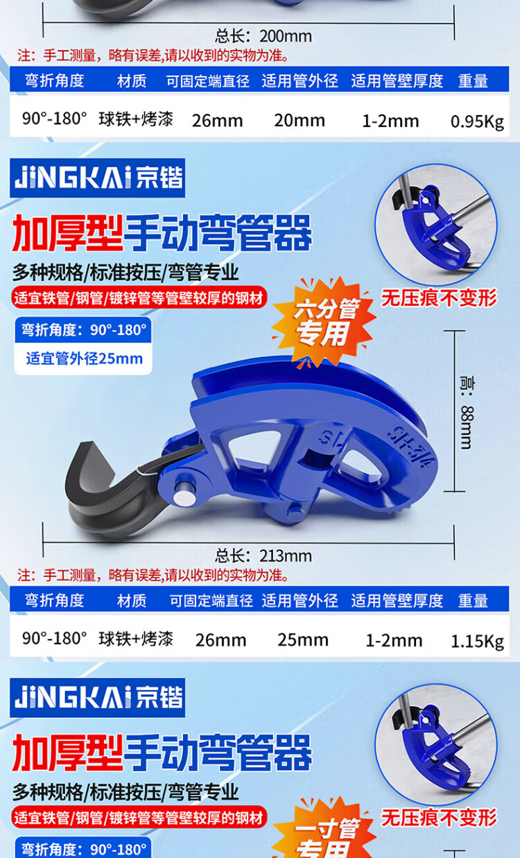 Jingkai pipe bender manual pipe bending artifact copper pipe steel pipe bending machine galvanized pipe iron pipe bender electrician pipe bender