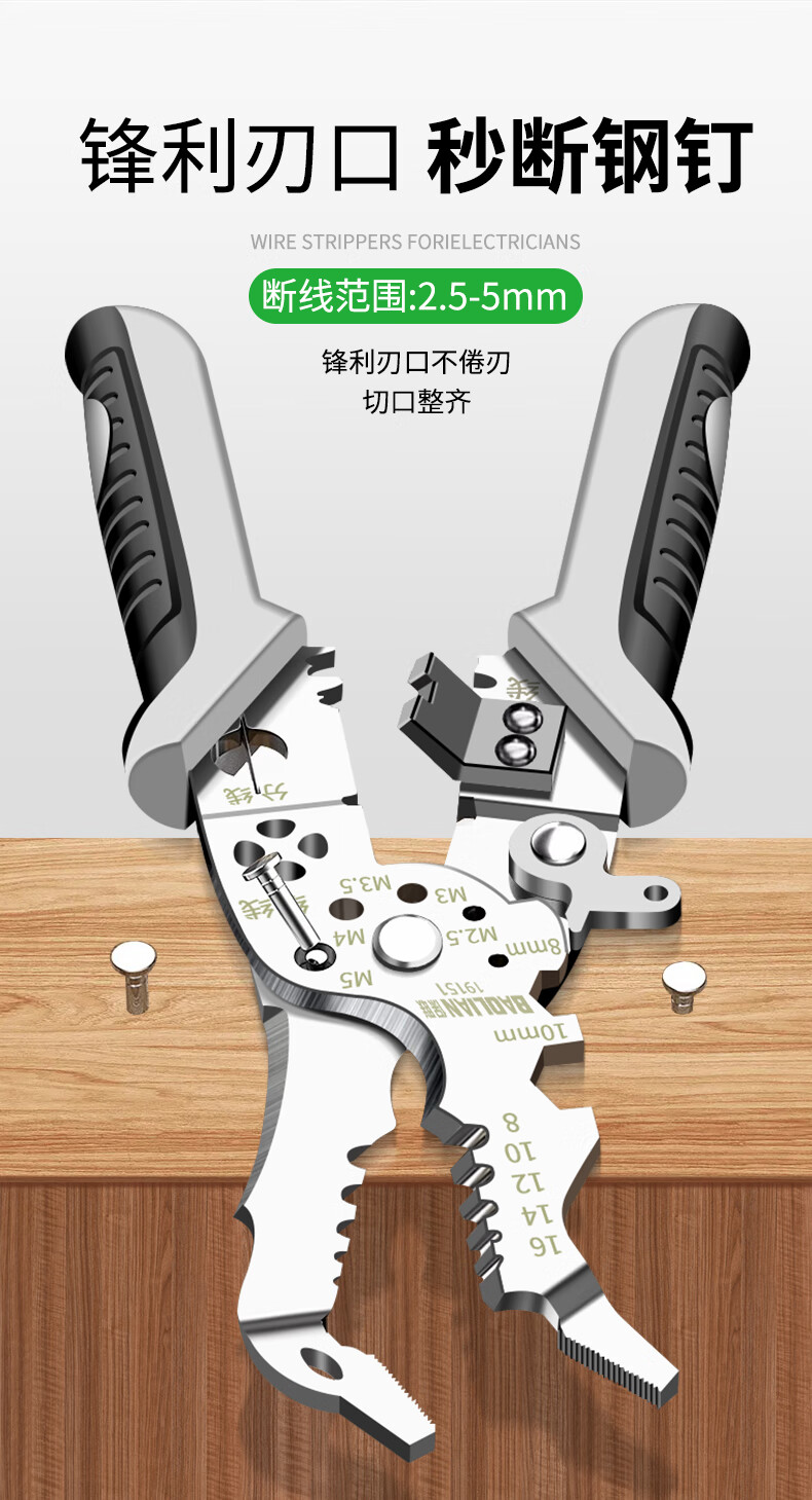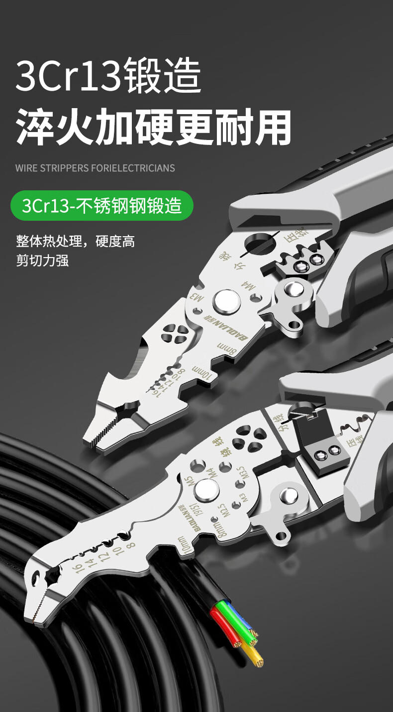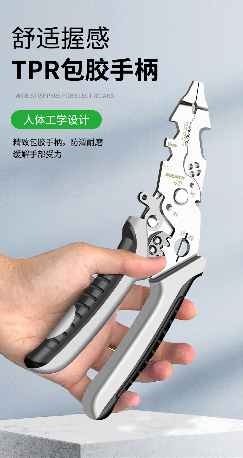 Baolian wire stripper electrician special multi-functional electrician scissors fiber optic wire cutter cable scissors stripping wire stainless steel curved mouth