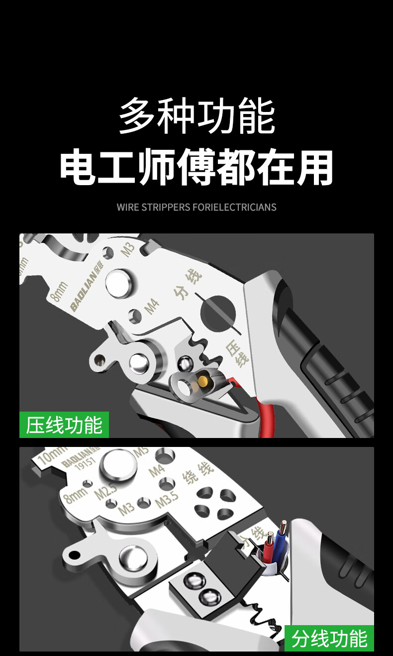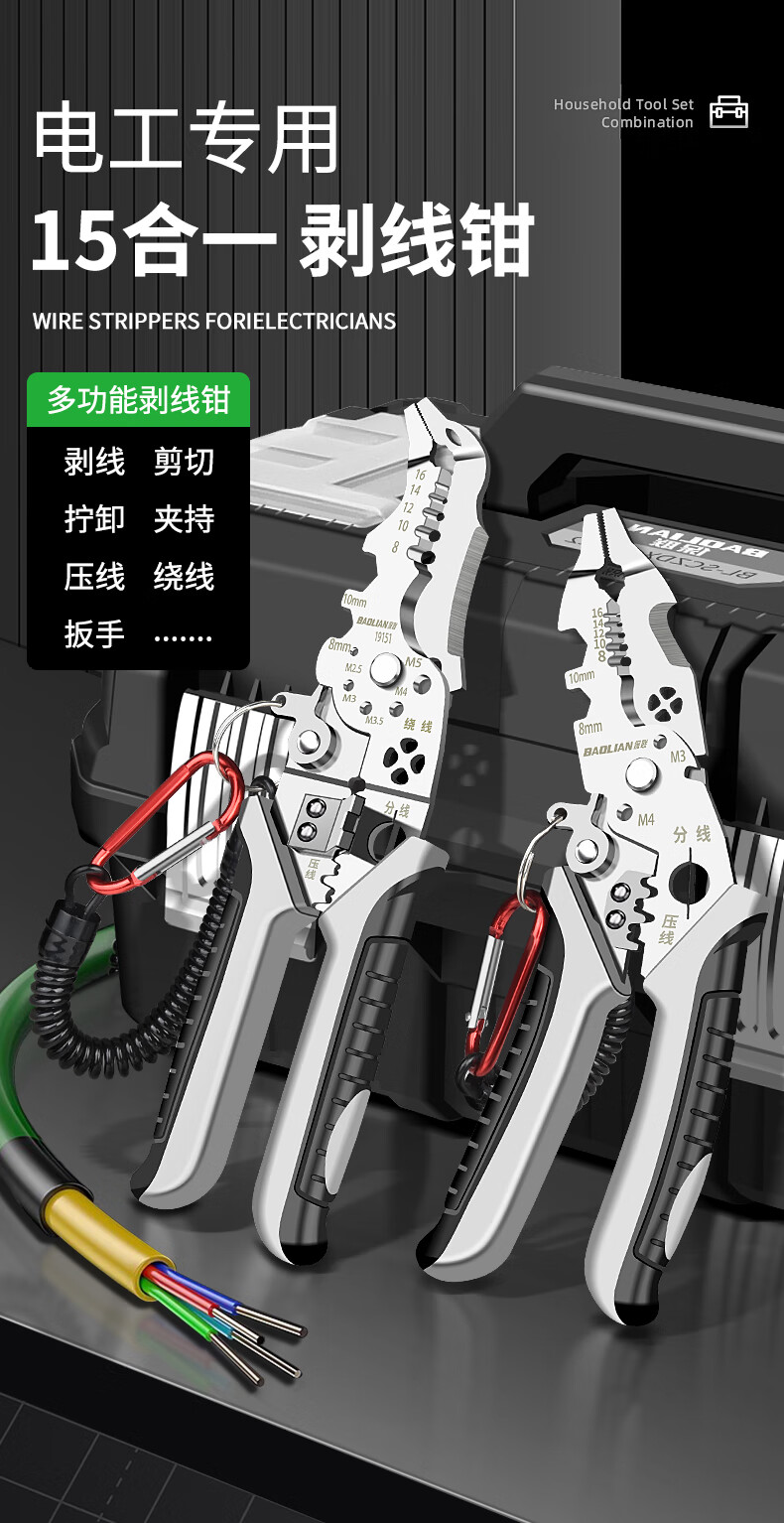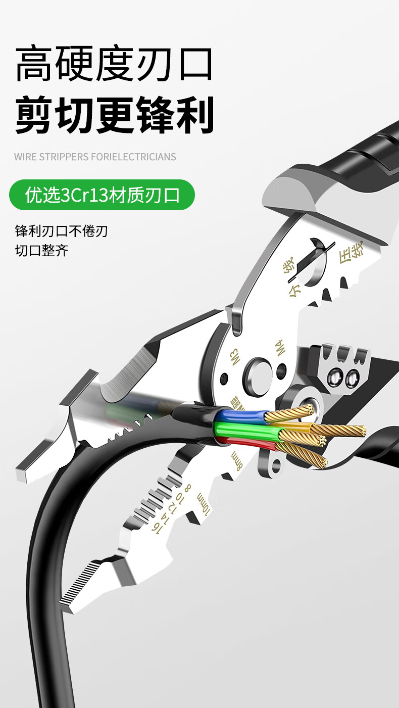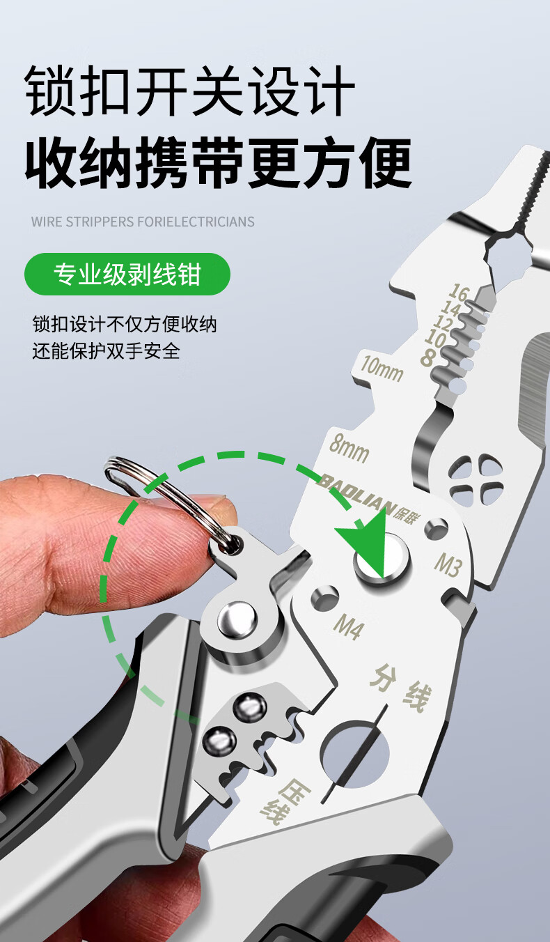 Baolian wire stripper electrician special multi-functional electrician scissors fiber optic wire cutter cable scissors stripping wire stainless steel curved mouth