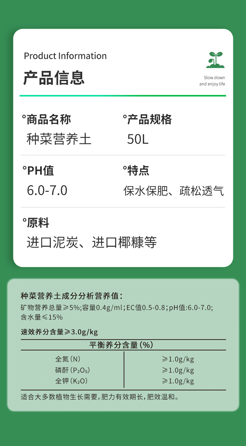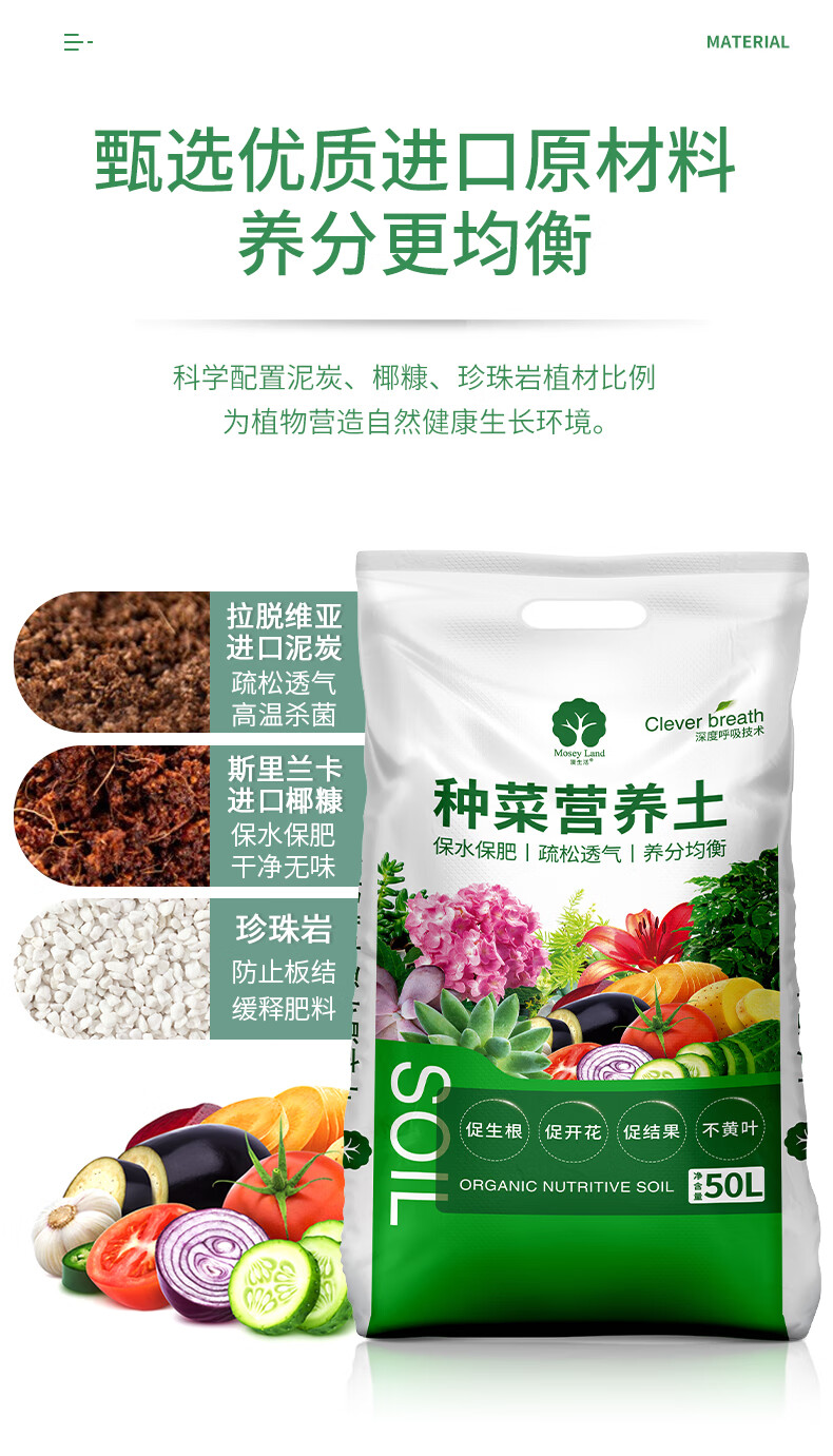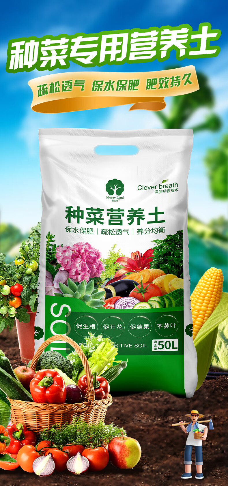 Manlife vegetable nutrient soil 50L imported planting soil flower soil vegetable soil plant organic nutrient soil potted gardening