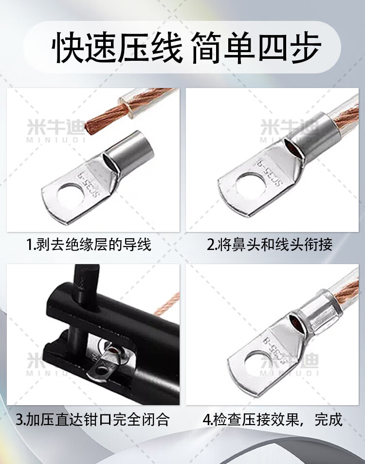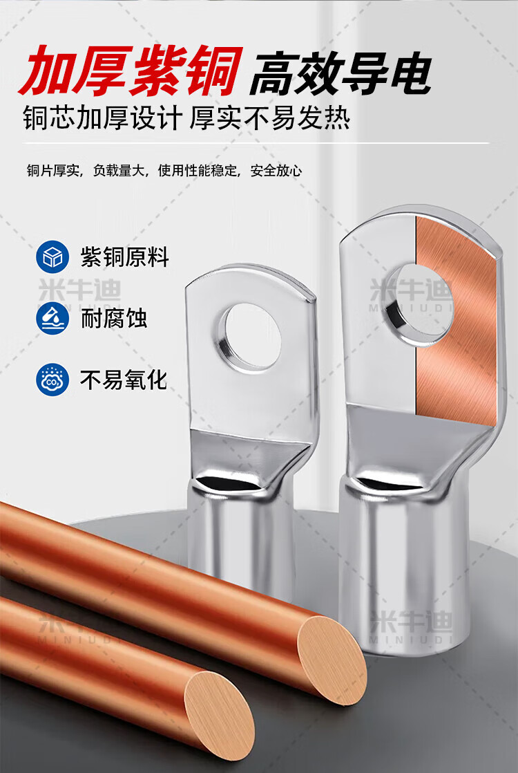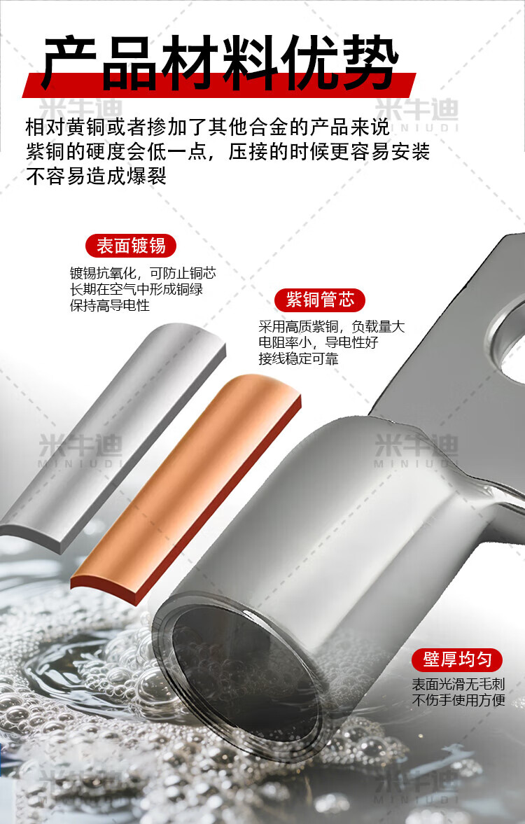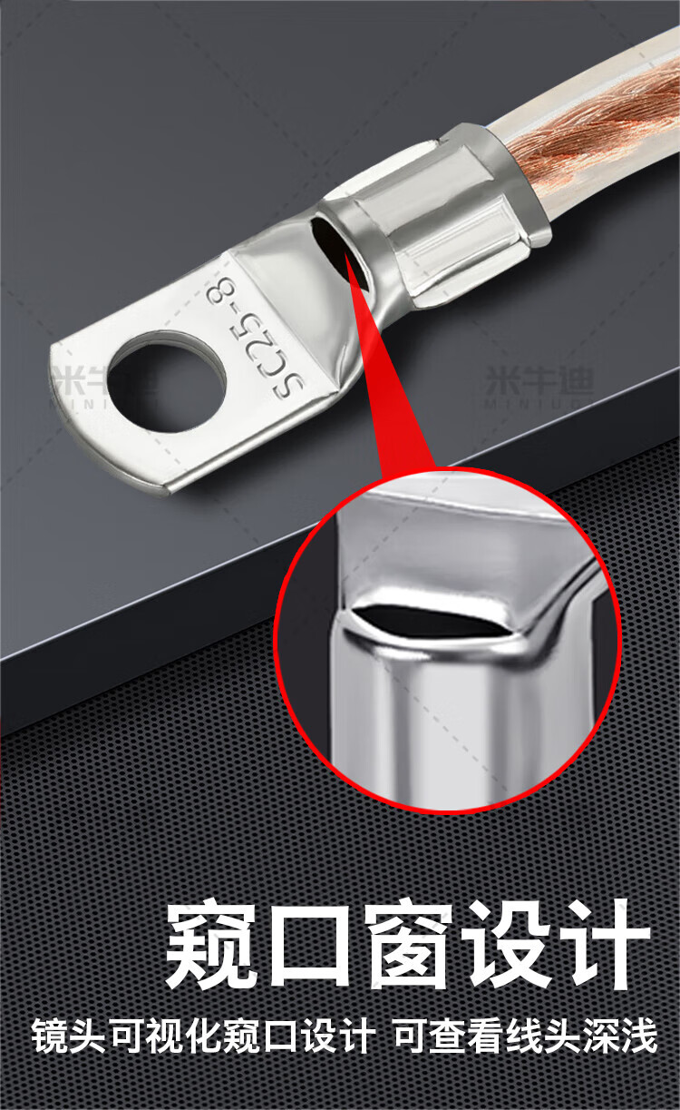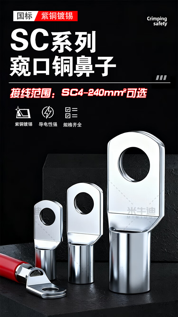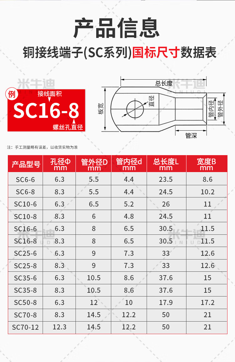 米牛迪 国标窥口铜鼻子SC16-6平方 电缆铜线耳接头紫铜镀锡接线端子一包【5只装】