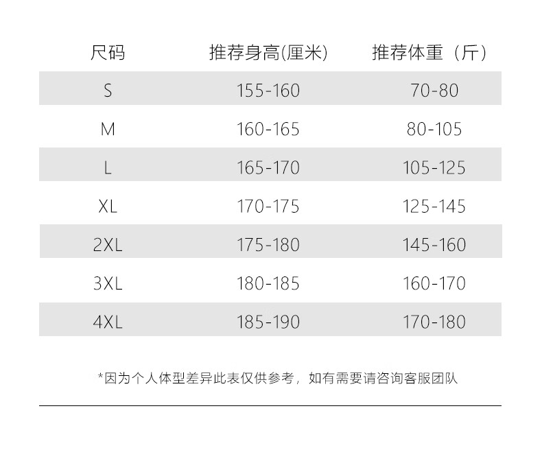 China (cm) 160-165/84-86 165-170 / 88-90 167-172 / 92-96 168-173 / 98-102 170-176 / 106-110