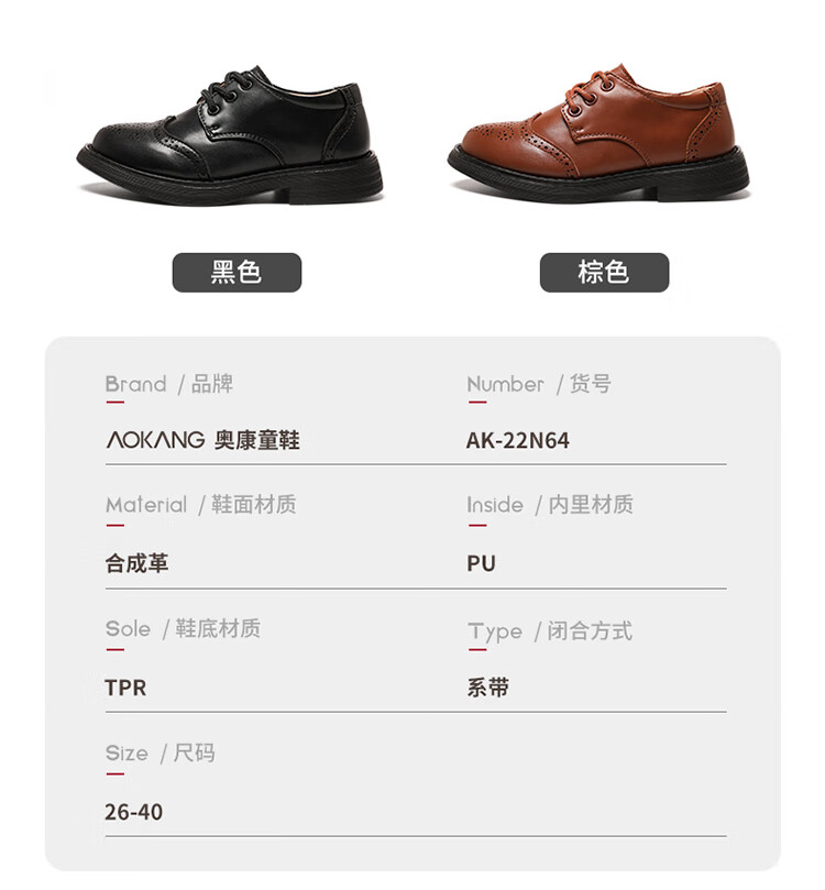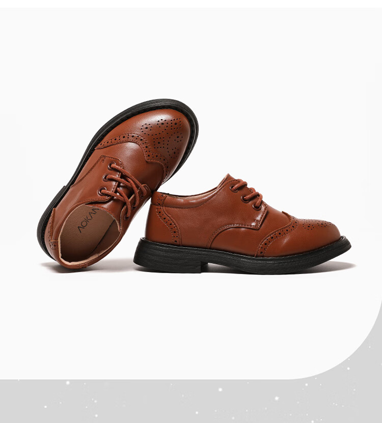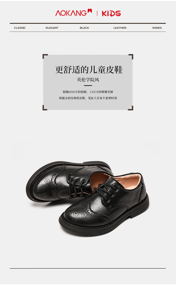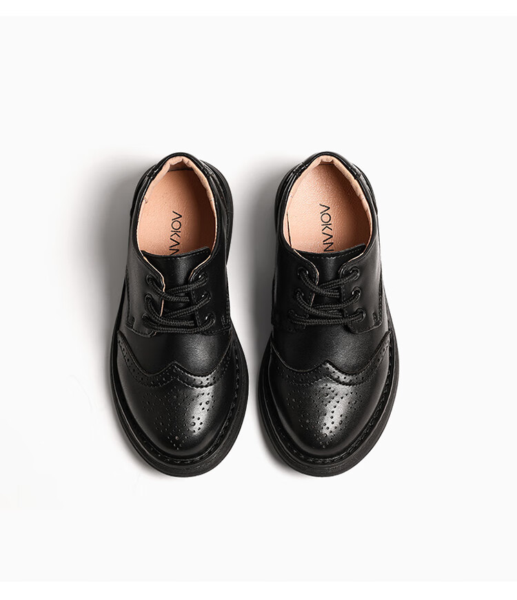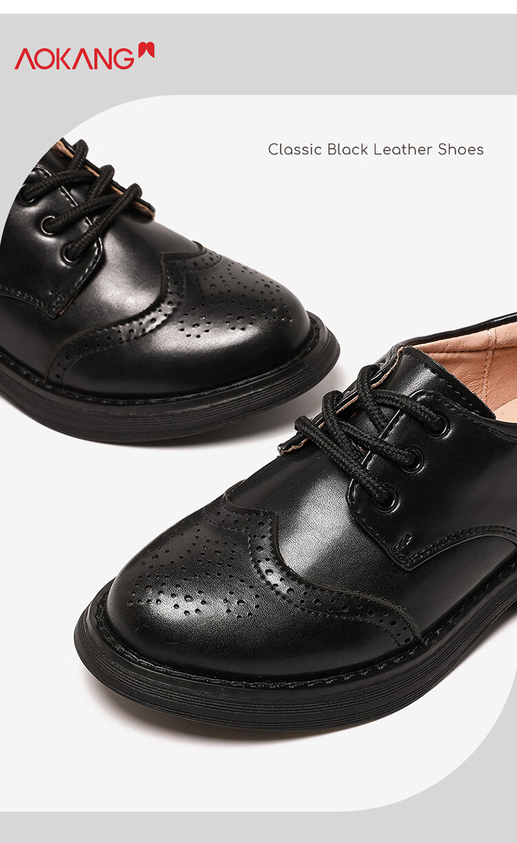 Aokang children's shoes, boys' leather shoes, 2025 spring new style, medium and large children's black campus performance shoes, foreign style boys' shoes