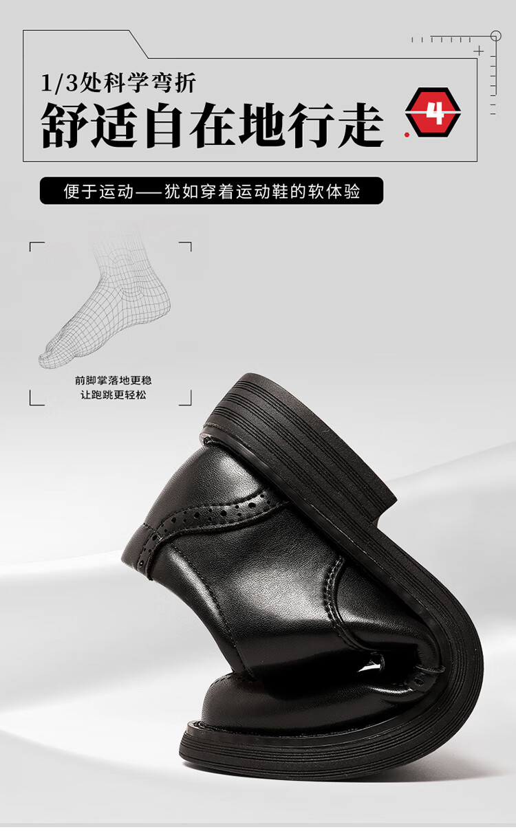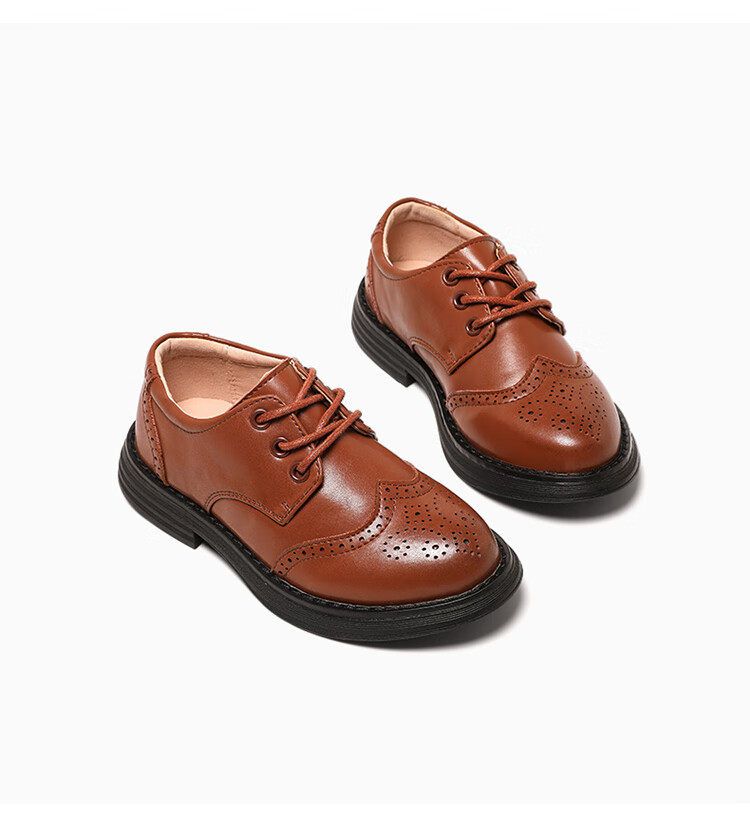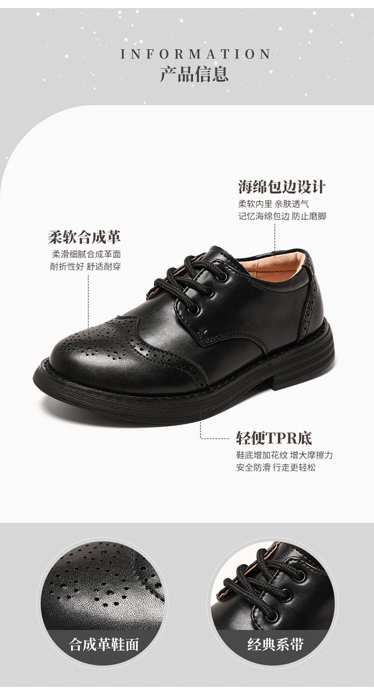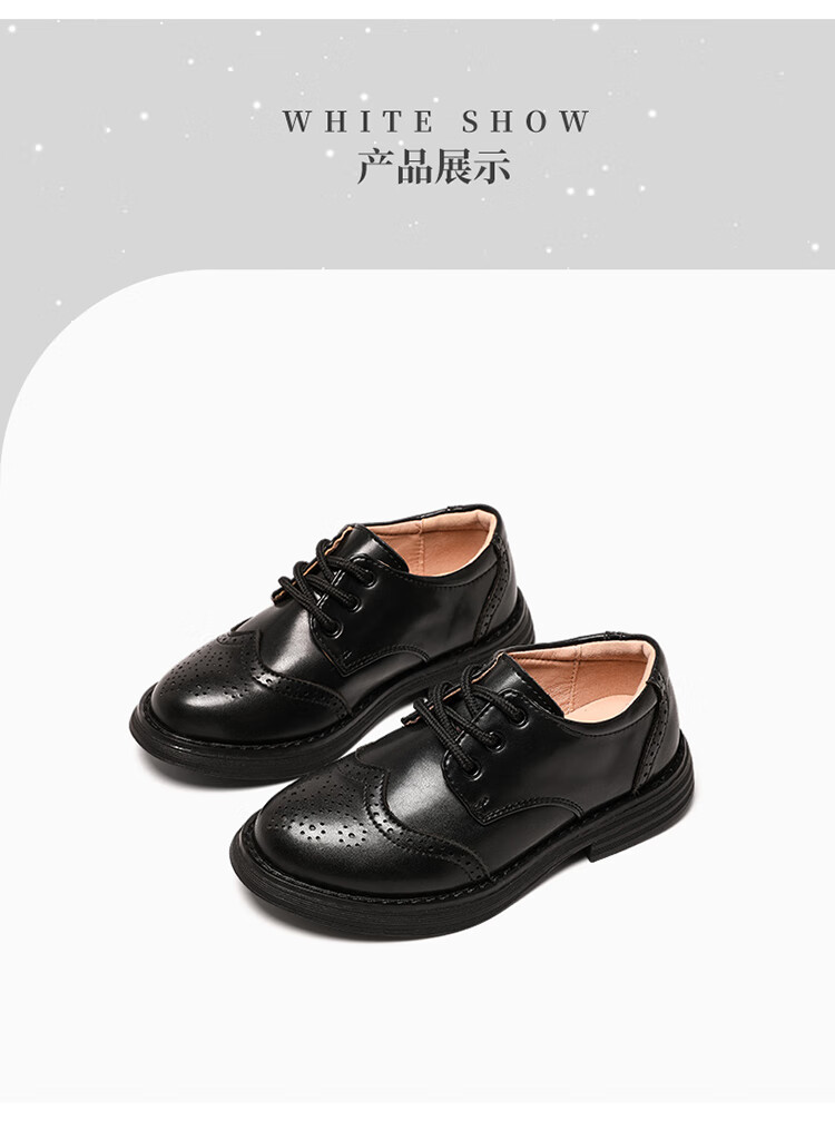 Aokang children's shoes, boys' leather shoes, 2025 spring new style, medium and large children's black campus performance shoes, foreign style boys' shoes