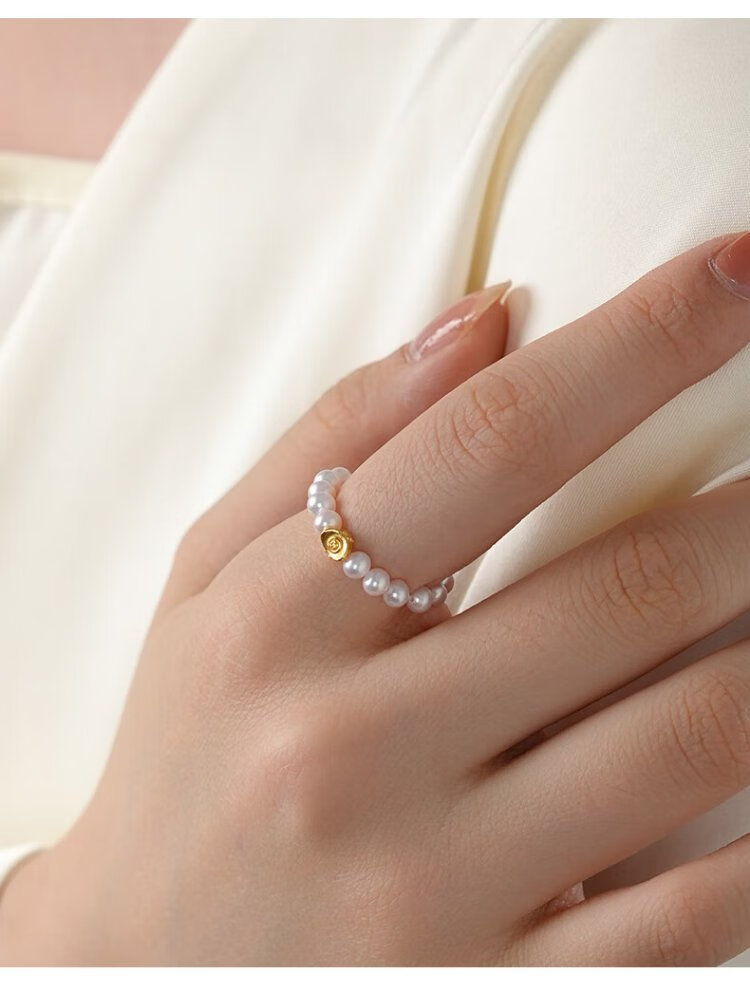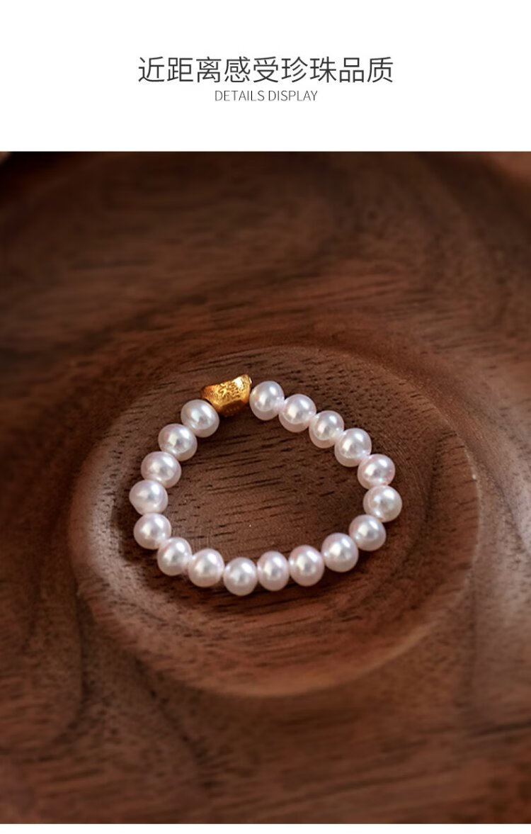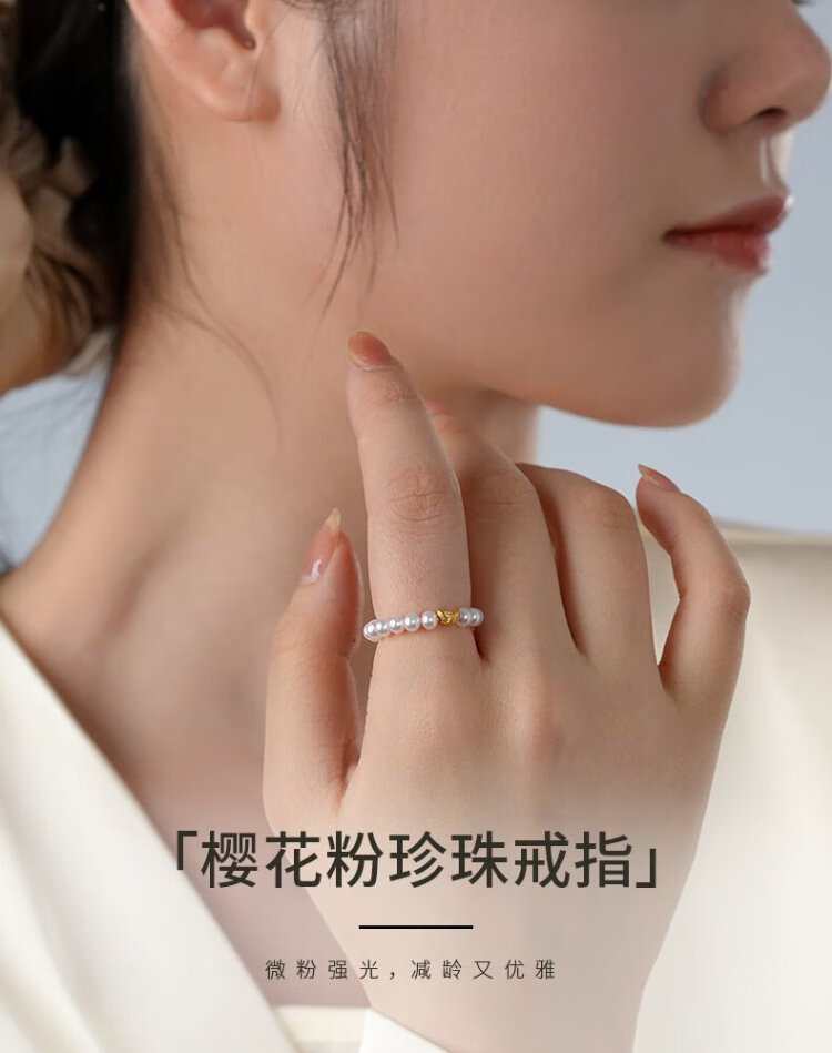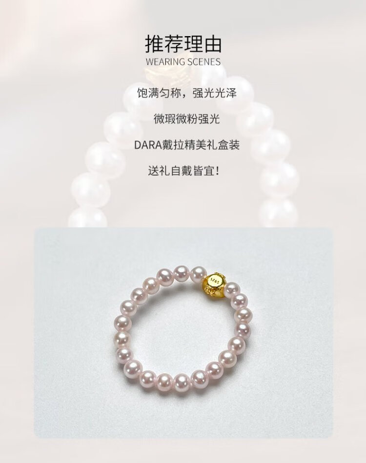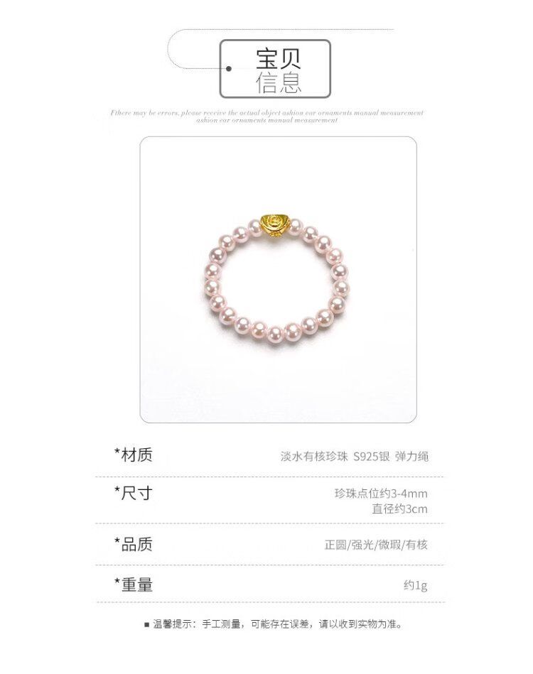 Dara S925 ingot pearl ring cherry blossom powder 3-4mm about 10 grams 18 pieces elastic rope birthday gift for girlfriend