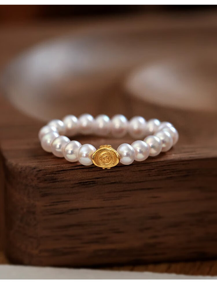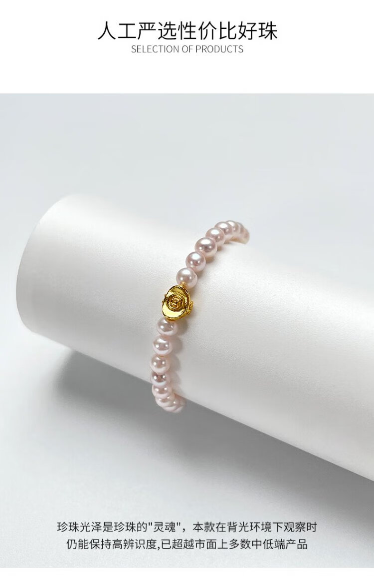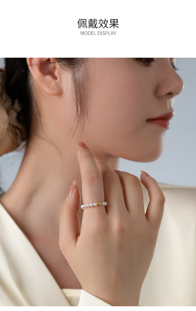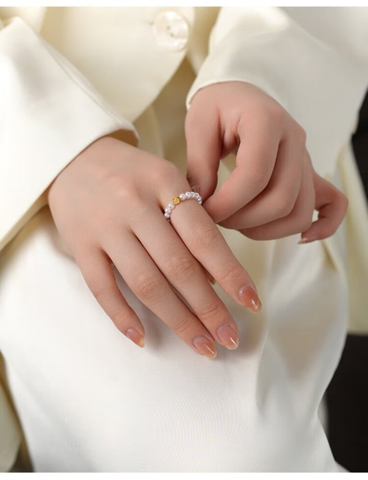 Dara S925 ingot pearl ring cherry blossom powder 3-4mm about 10 grams 18 pieces elastic rope birthday gift for girlfriend