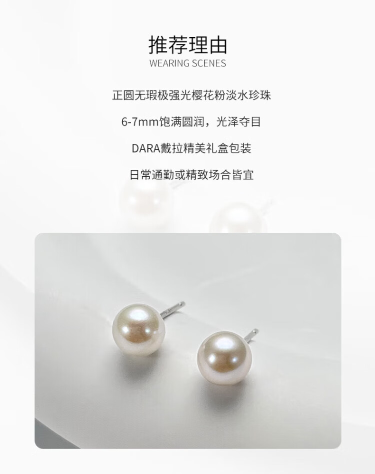 Dara Sakura Pink 925 Silver Freshwater Pearl Earrings Women's Earrings Simple and Versatile Birthday Gift for Girlfriend and Wife Practical Gift