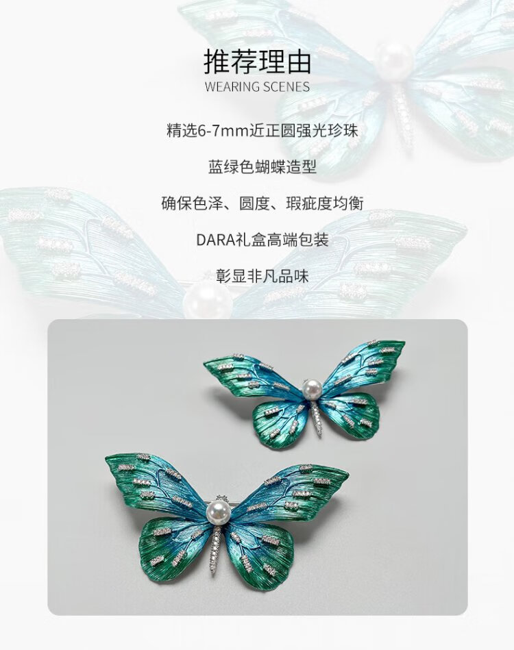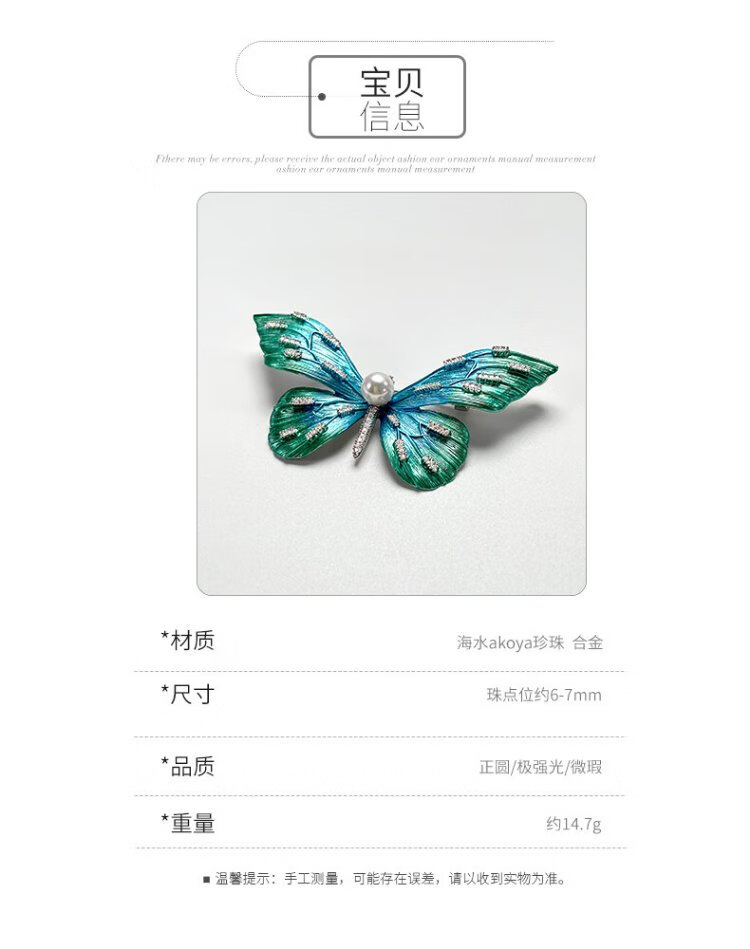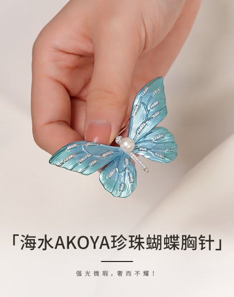 Dara Akoya seawater pearl brooch high-end butterfly corsage coat cheongsam collar pin birthday gift for girlfriend