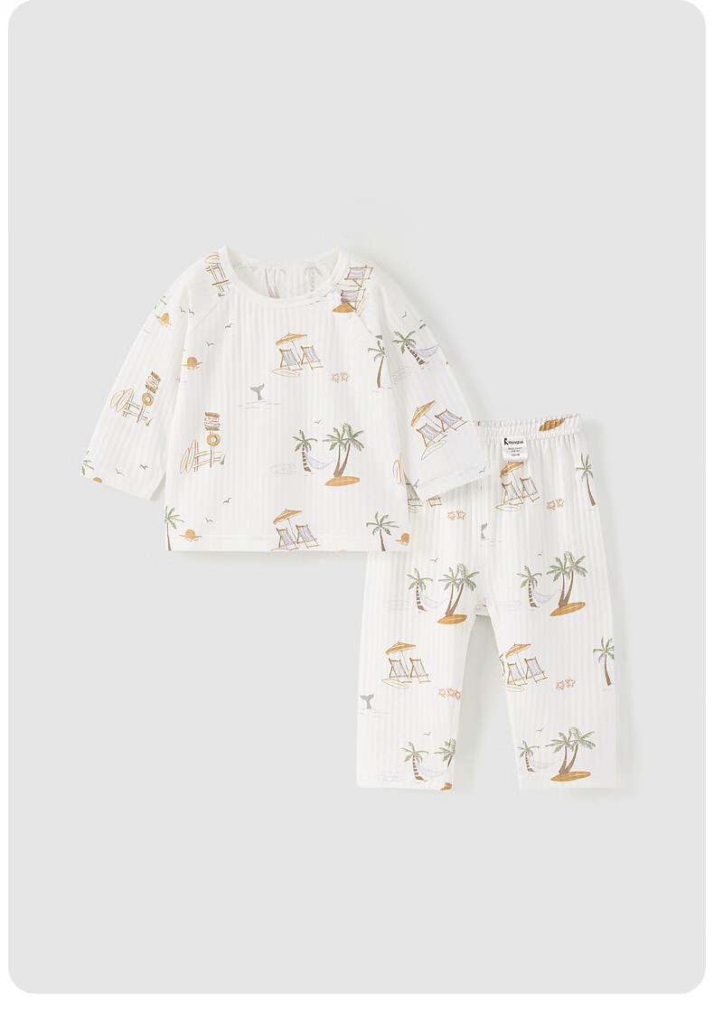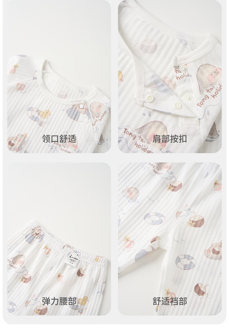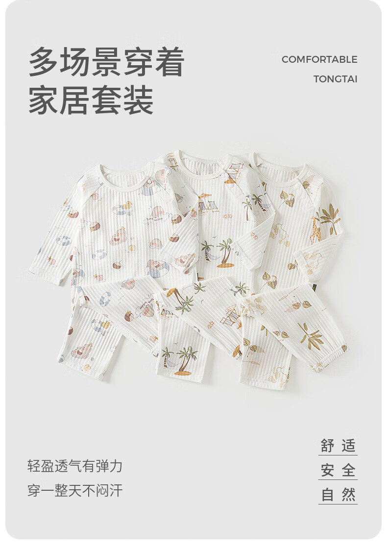 Tongtai (TONGTAI) baby autumn clothes set summer pure cotton baby underwear children's pajamas autumn pants home clothes jacquard blue 90cm