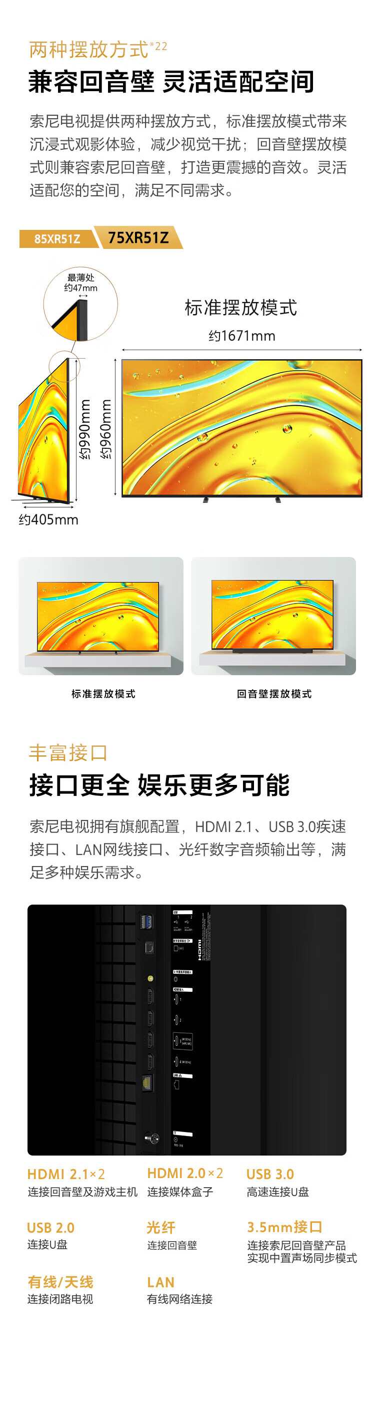 Sony (SONY) K-75XR51Z Sony TV 5 Series 75-inch XR50 Series 64G Version 2025 New Product MiniLED XR Chip First-Class Energy Efficiency National Subsidy