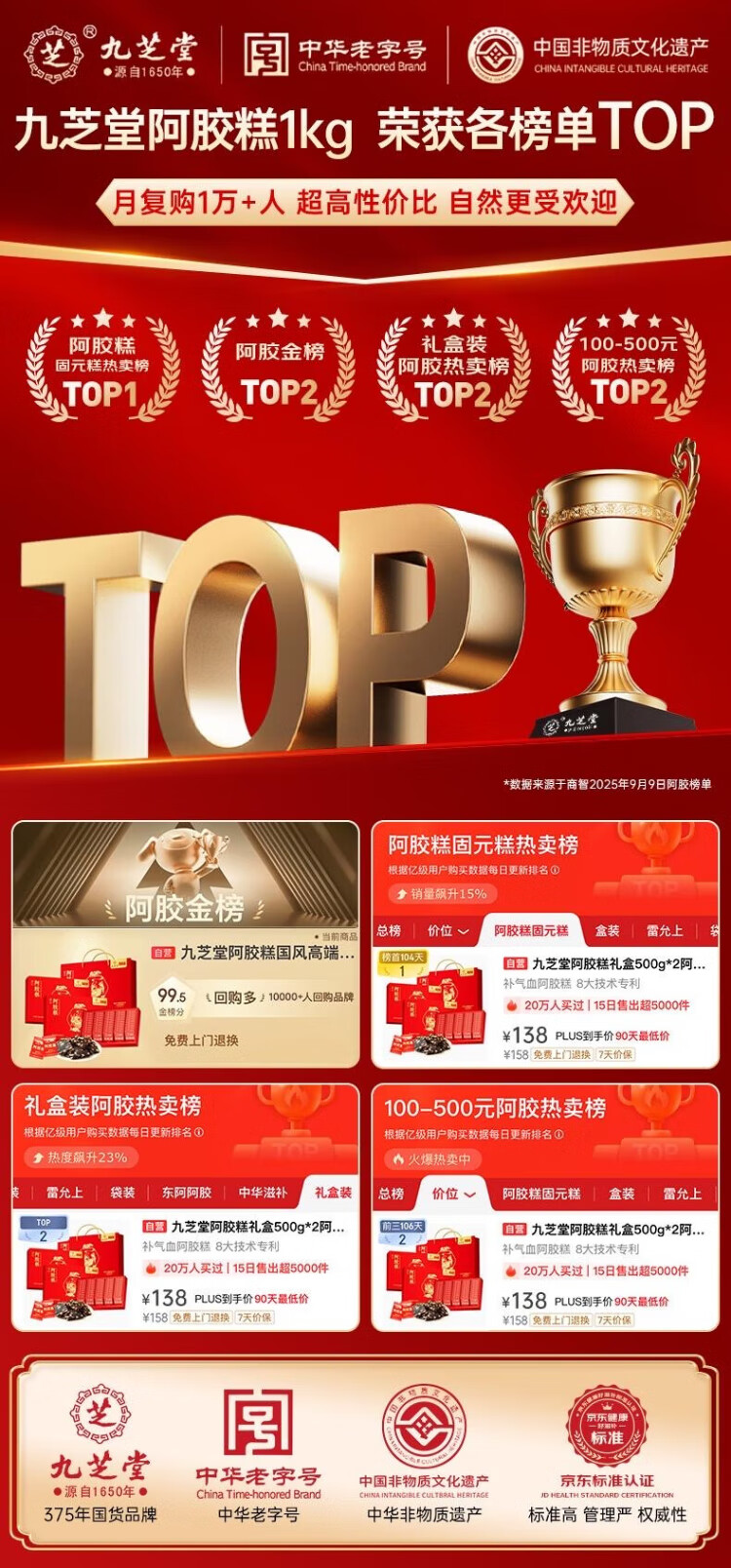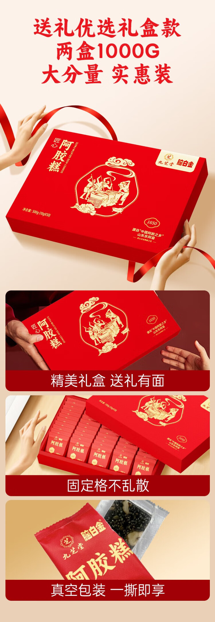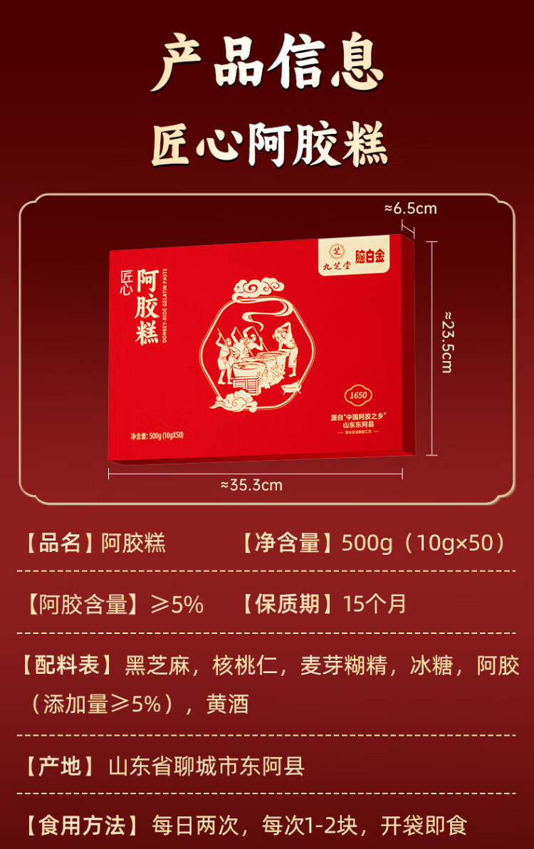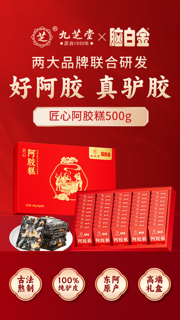 Jiuzhitang donkey-hide gelatin cake gift box 500g*2 boxes of donkey-hide gelatin paste nutritional supplements for blood, wife, girlfriend, holiday gift for mother