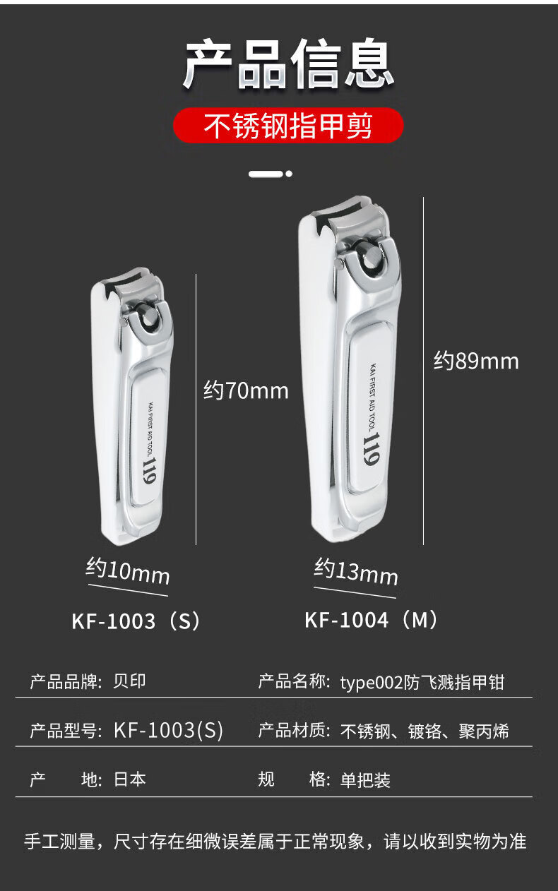 Kaiyin imported from Japan anti-nail chip chipping nail clipper Seiko upgraded model nail clipper scissors 119 series S size