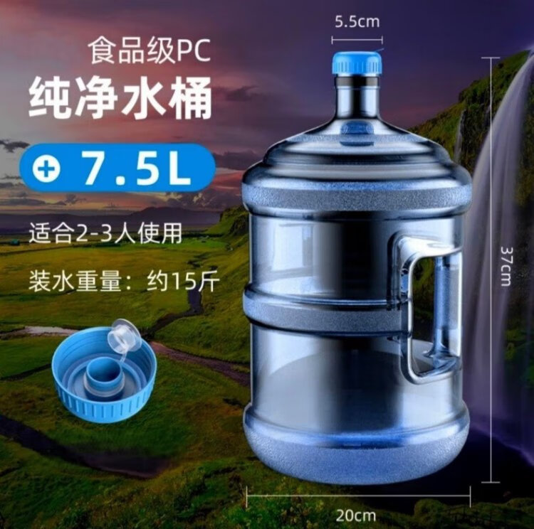 Zilu pure water bucket mineral water bucket drinking bucket 7.5L barreled water bucket plastic water dispenser portable outdoor bucket household water storage bucket