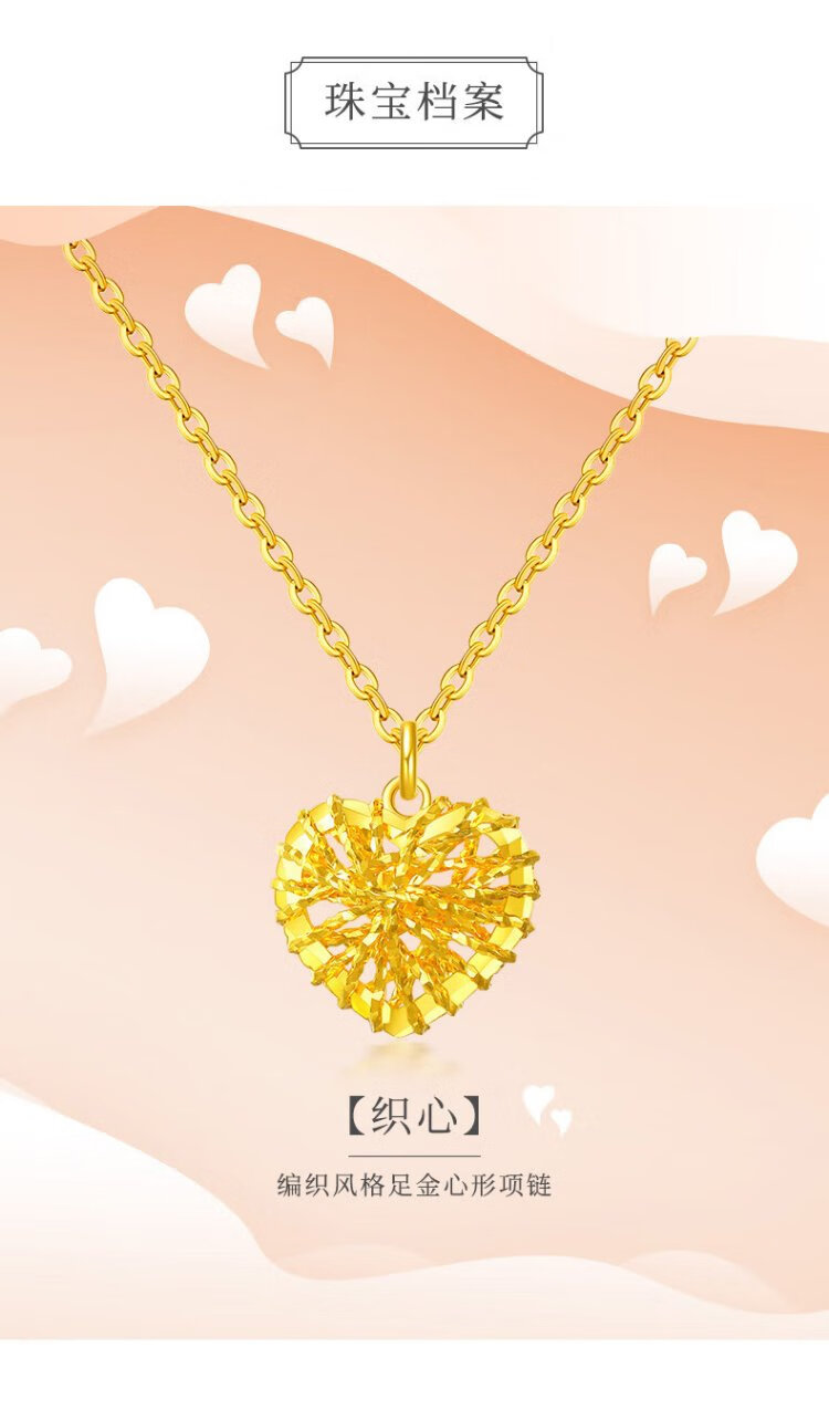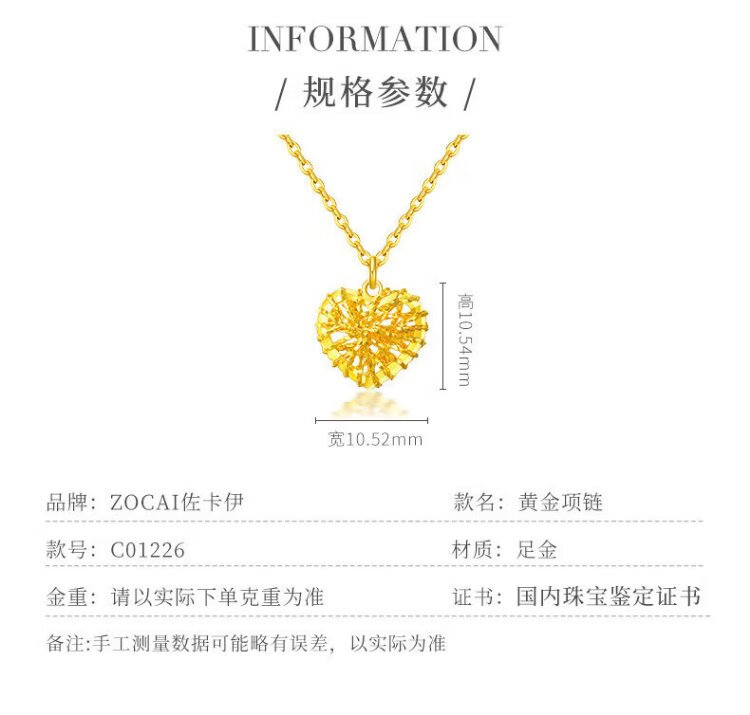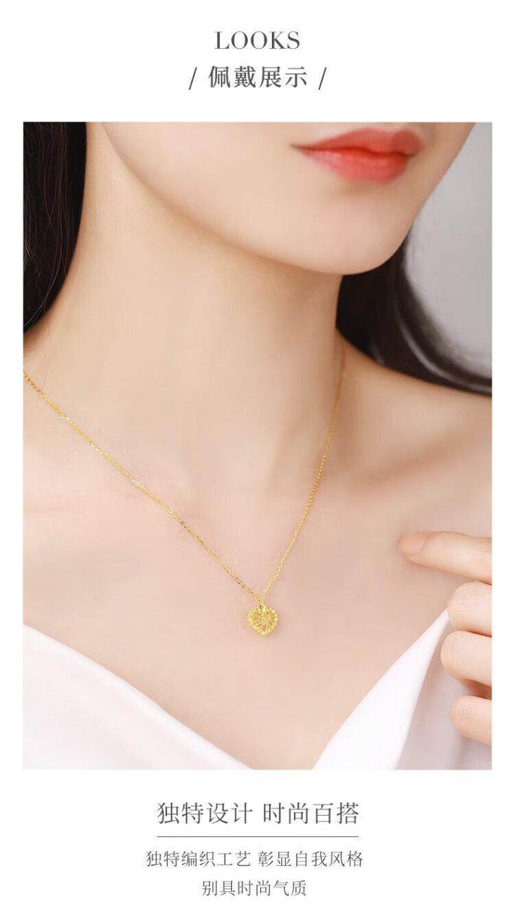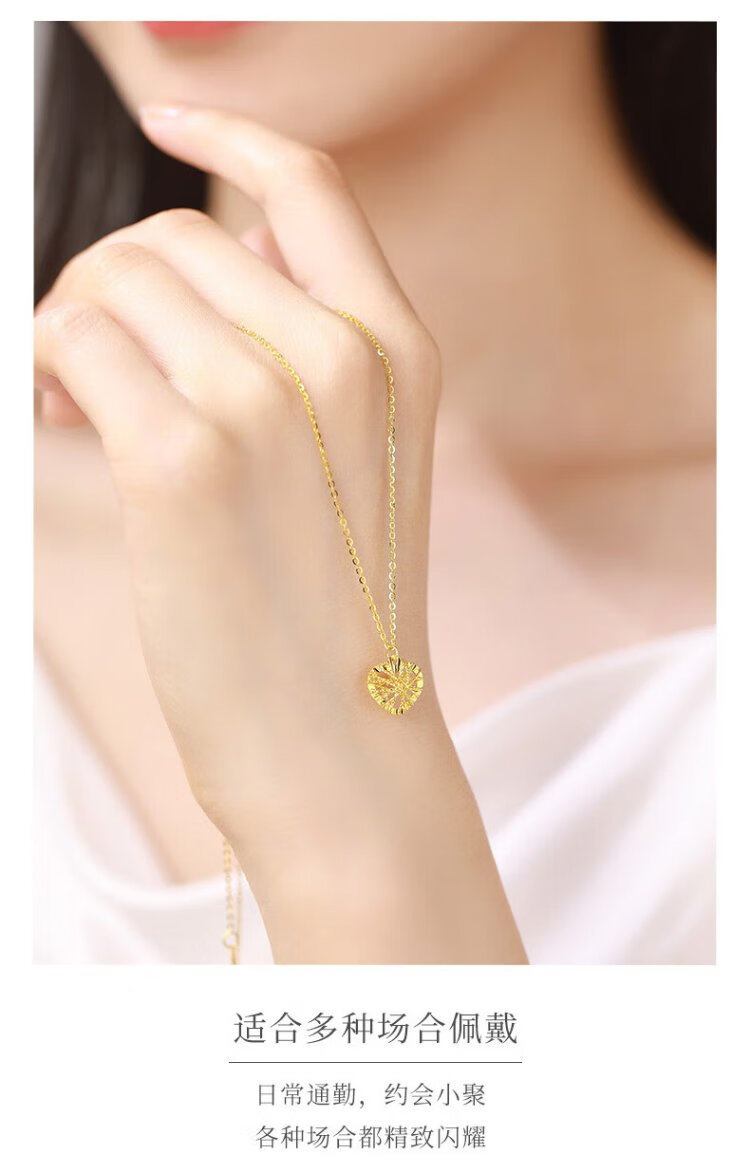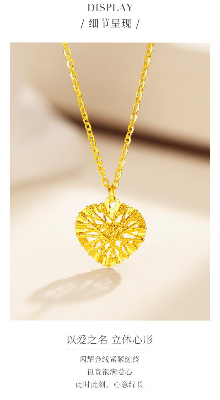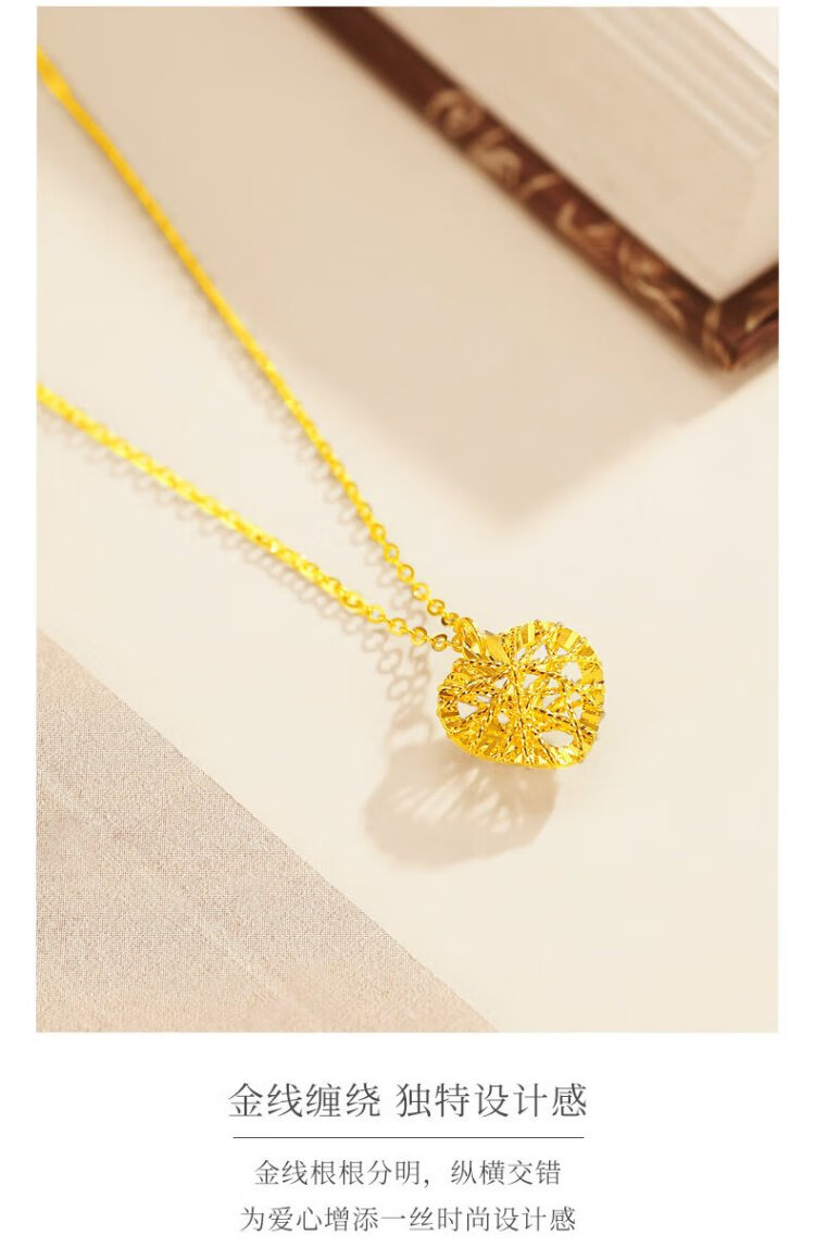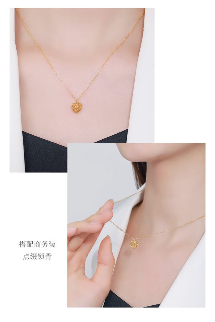 Zokai gold pendant women's gold heart-shaped gold necklace as a birthday gift for girlfriend, about 0.96g