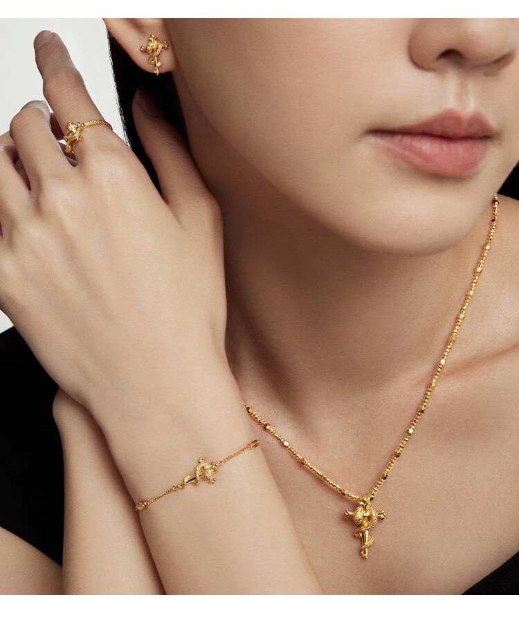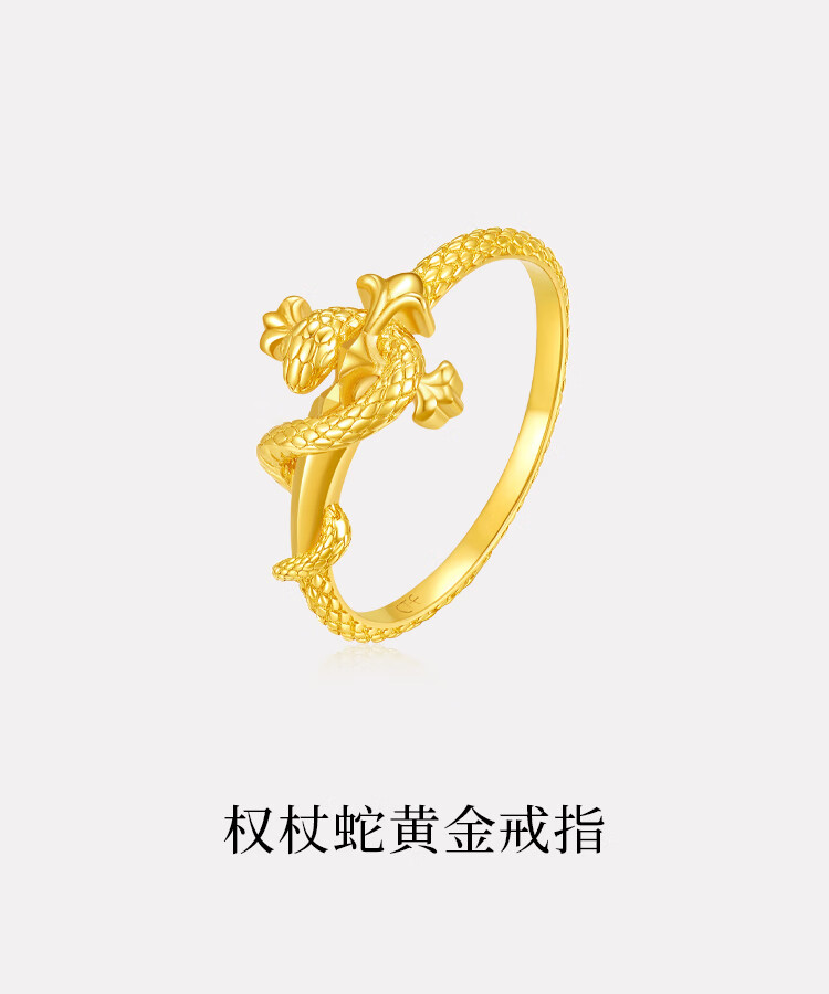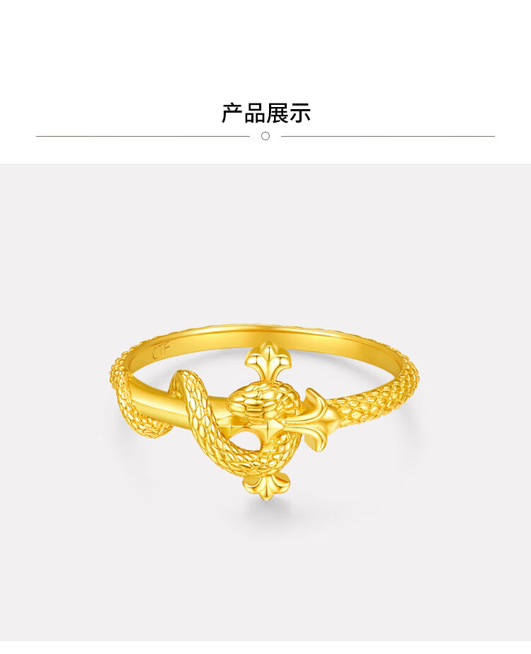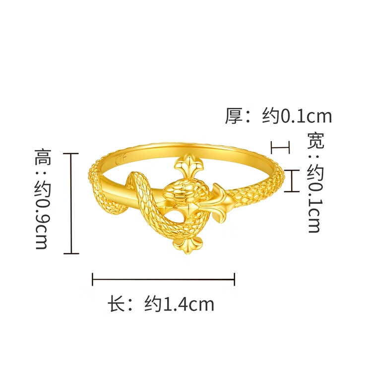 Chow Tai Fook Scepter and Snake Gold Ring (labor cost 320) No. 15, about 2.8g EOF1445