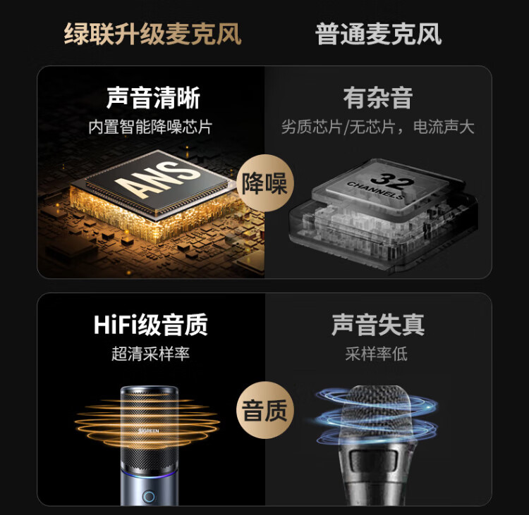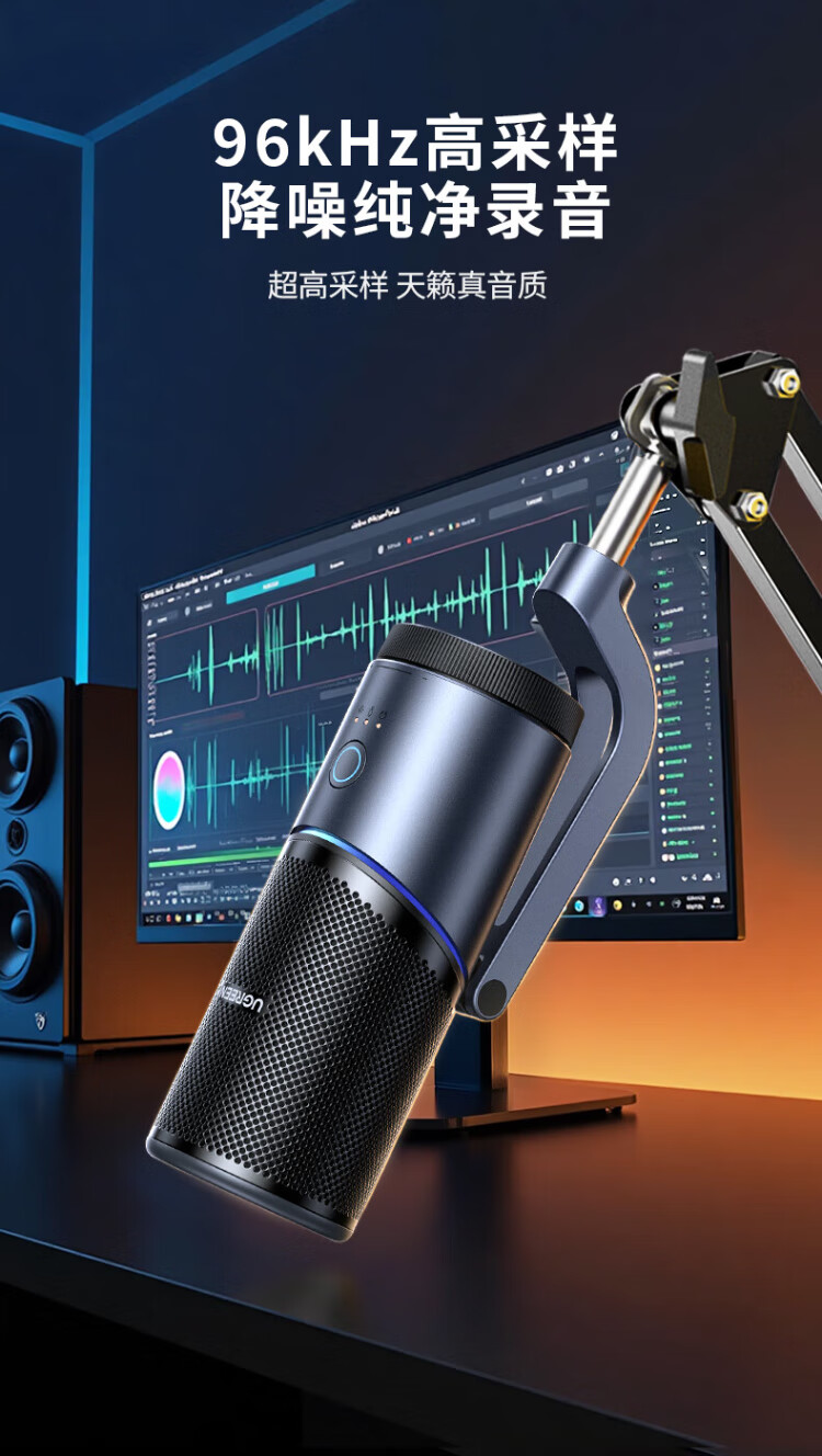 Green Alliance USB desktop microphone game live broadcast noise reduction condenser microphone built-in sound card microphone desktop computer national K song heart-shaped pointing recording microphone suitable for speaker cantilever bracket