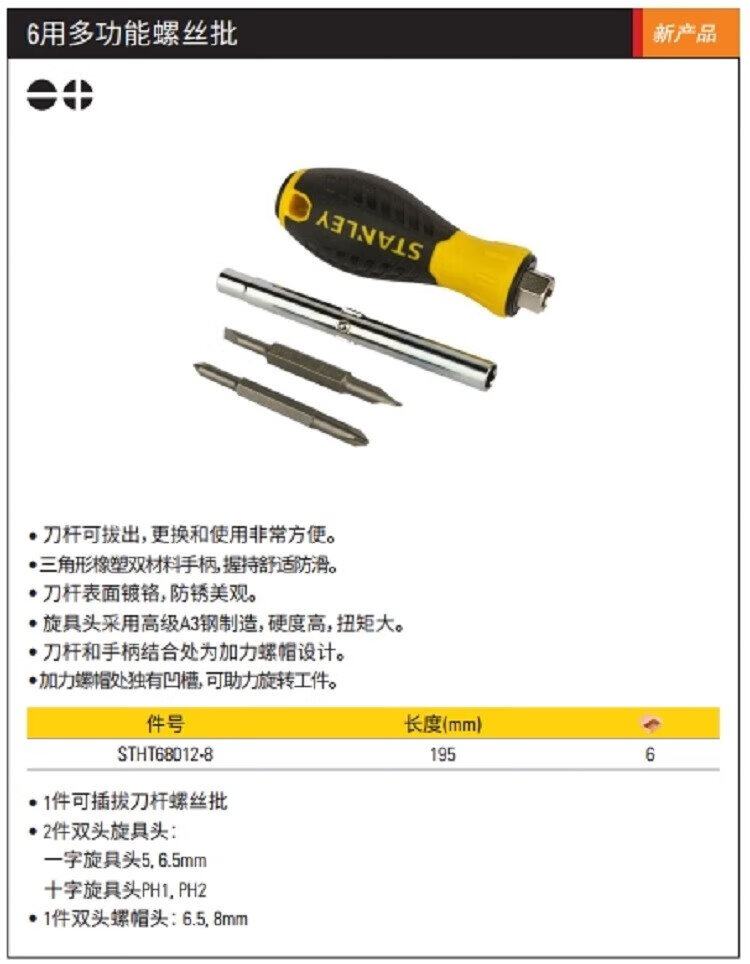 Stanley (STANLEY) 6-purpose multi-purpose screwdriver STHT68012-8 cross-purpose dual-purpose screwdriver for home maintenance