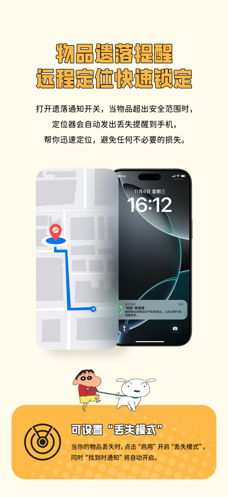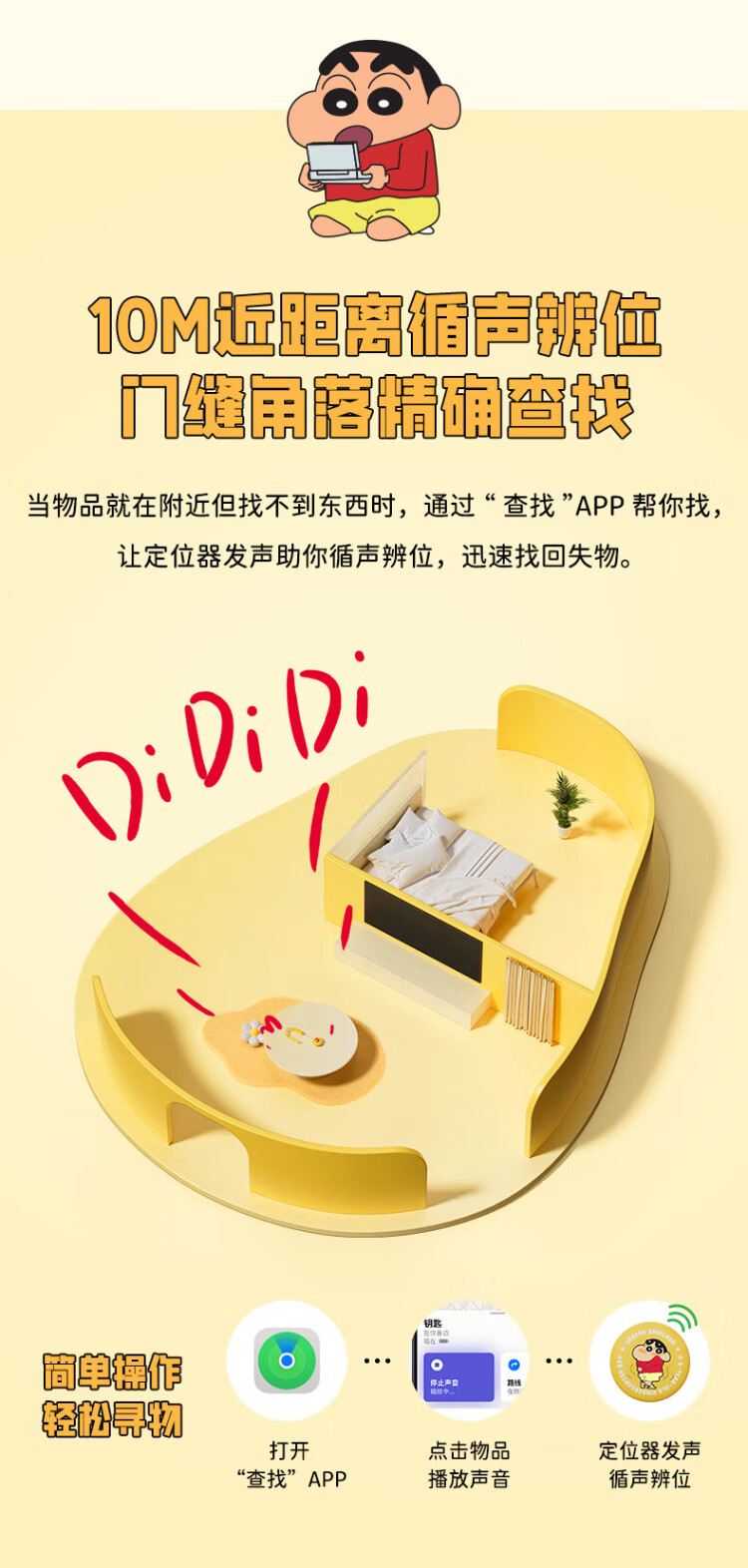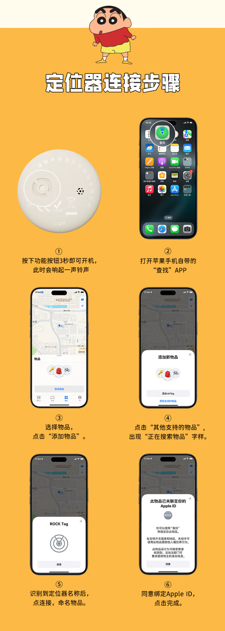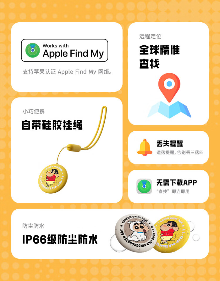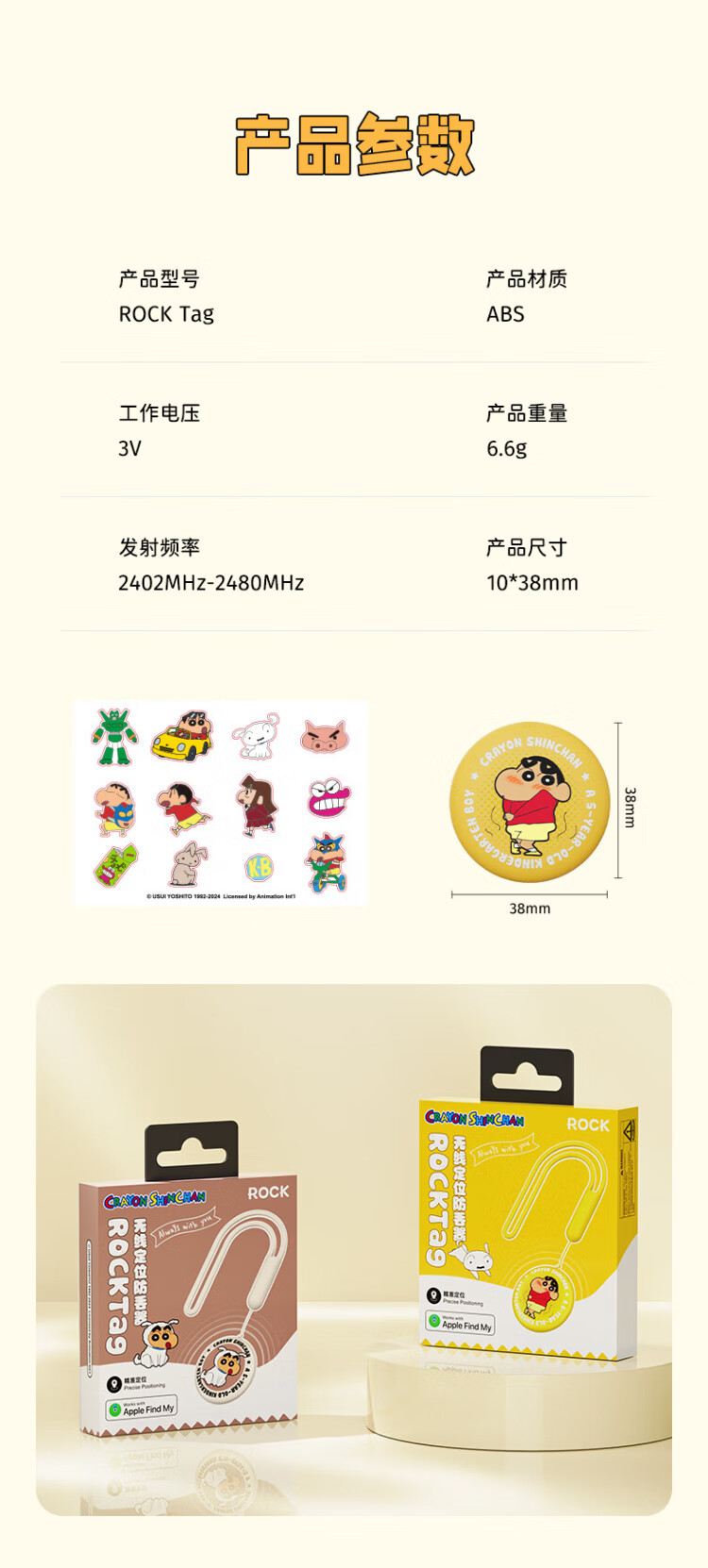 ROCK Crayon Shin-chan airtag Apple certified positioning tracker anti-lost device wireless positioning accurate search Apple mobile phone positioning buckle children's pet car key bicycle
