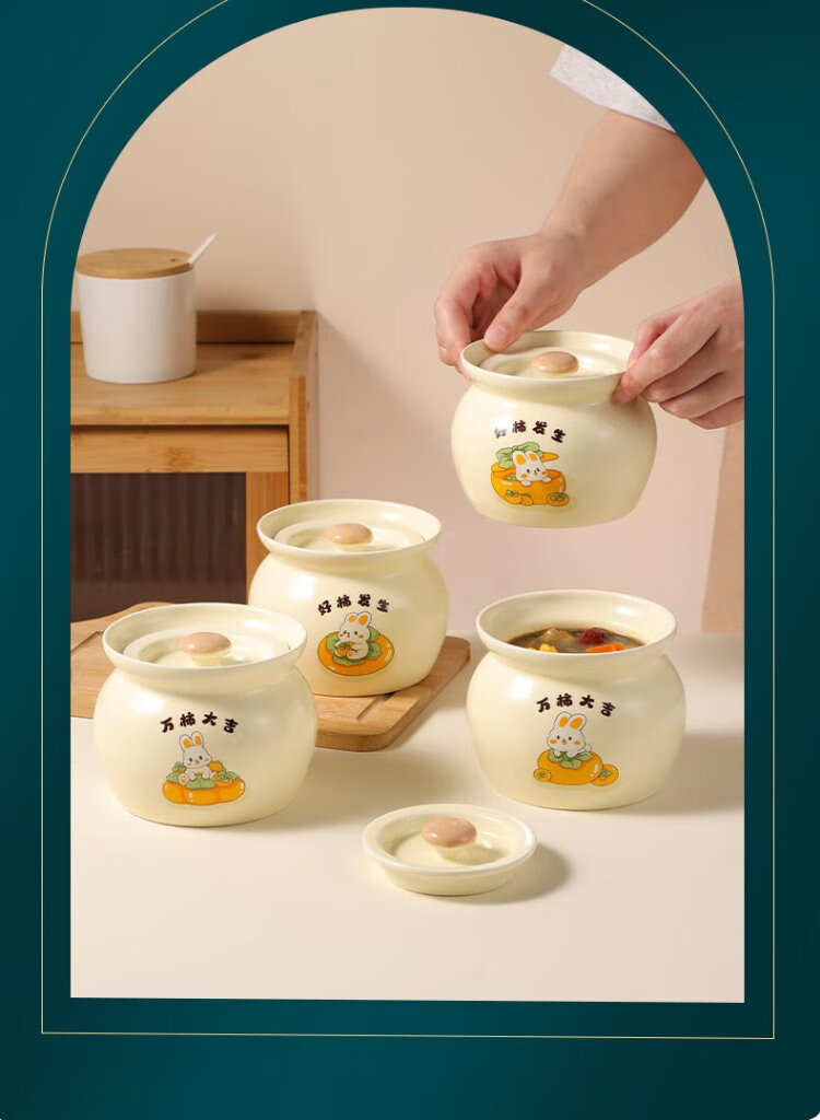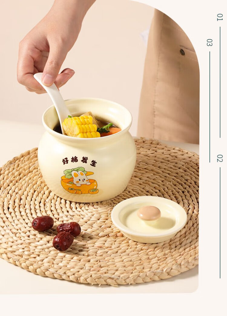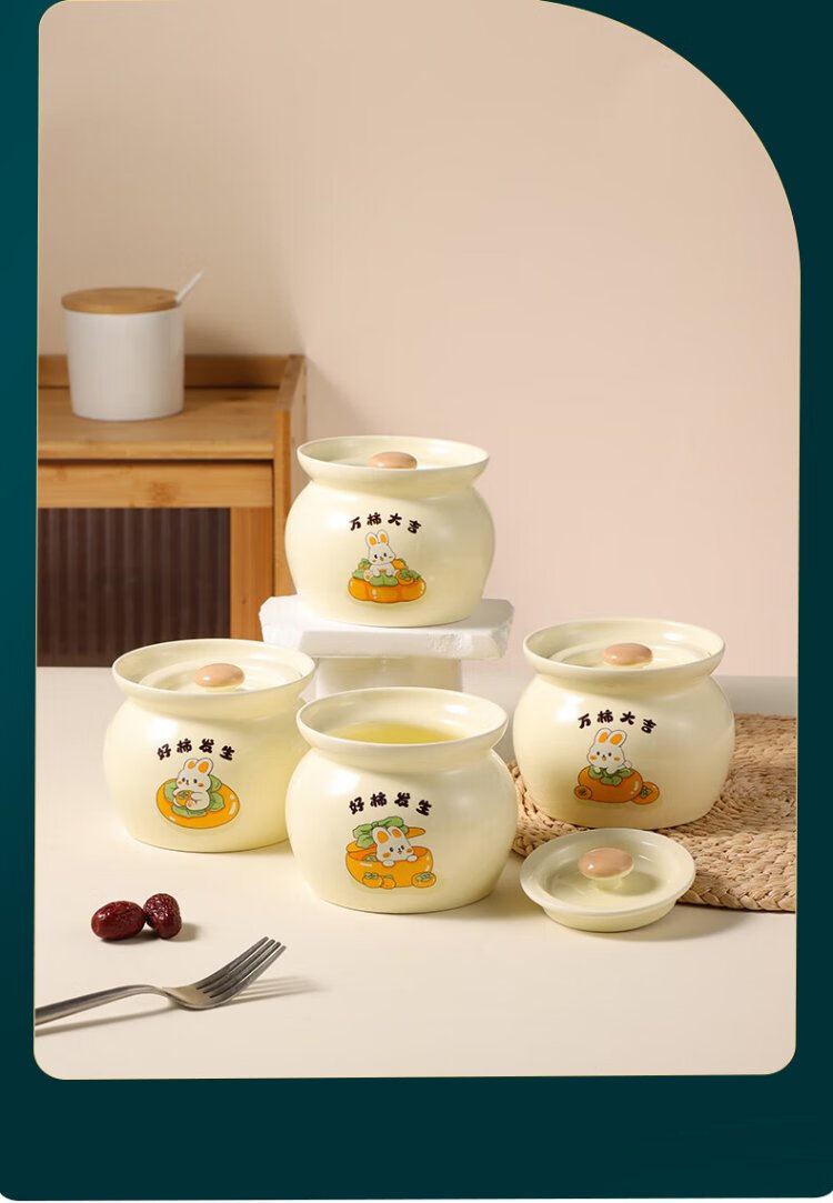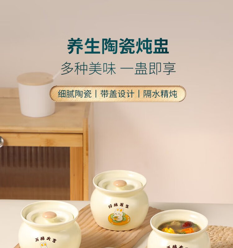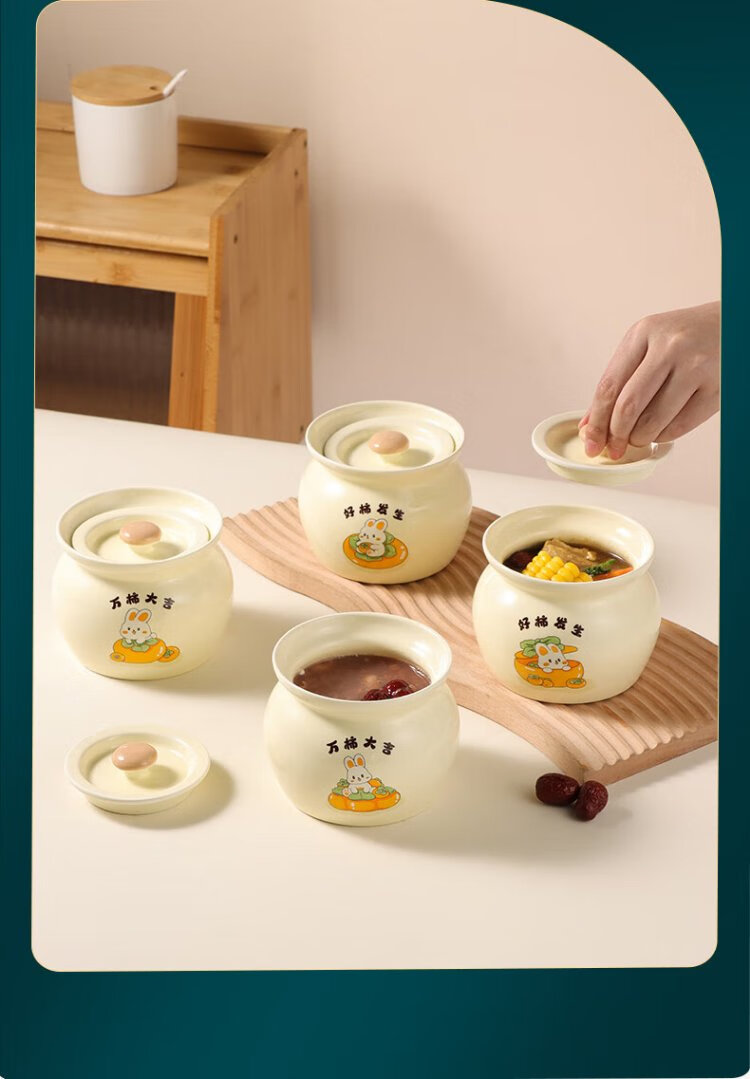 Baijie ceramic bowl, Wanshi Daji stew pot, soup bowl, water-proof inner tank, steamed egg porridge, bird's nest, lard can, tableware, medium size 400ml
