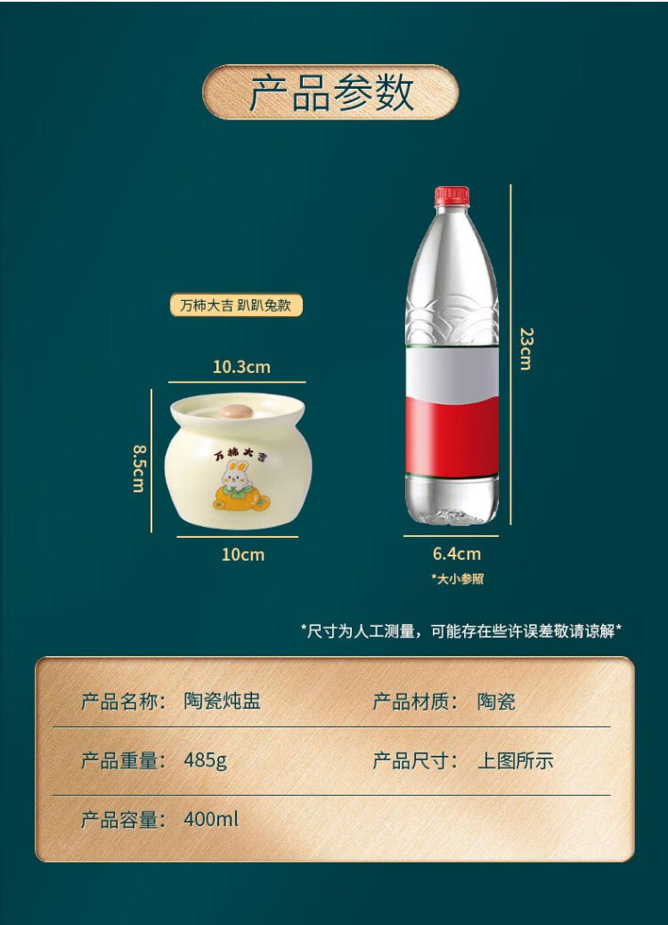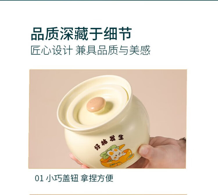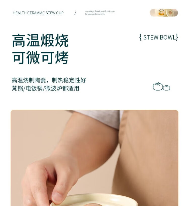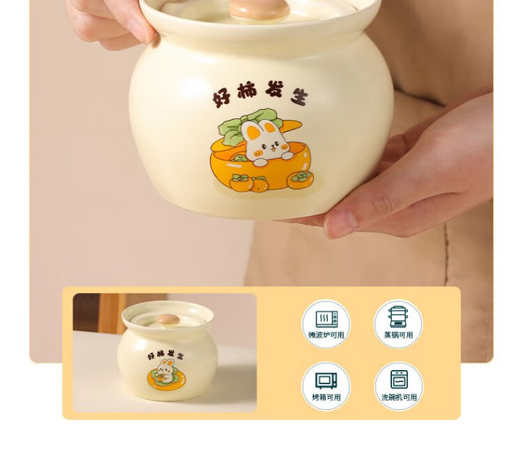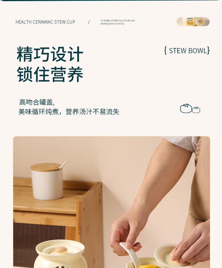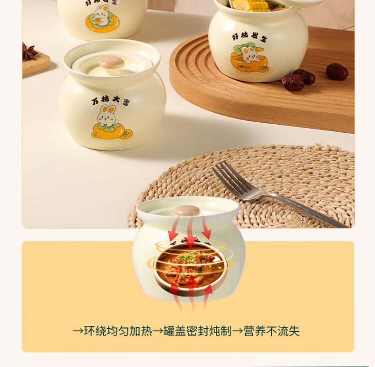 Baijie ceramic bowl, Wanshi Daji stew pot, soup bowl, water-proof inner tank, steamed egg porridge, bird's nest, lard can, tableware, medium size 400ml